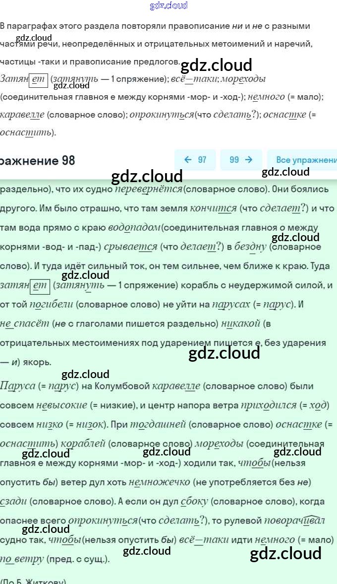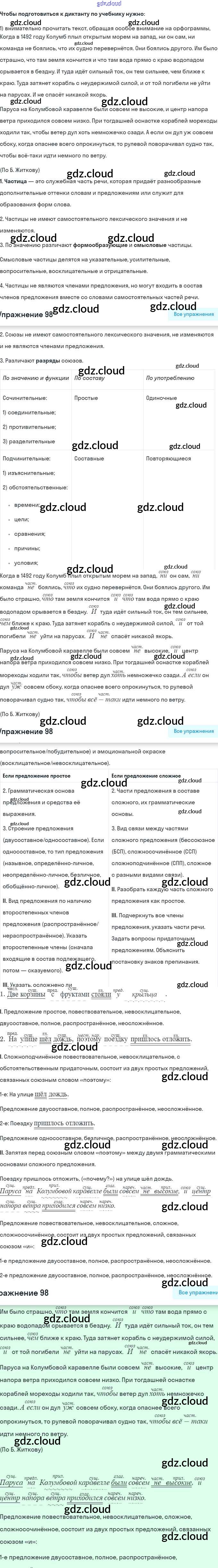 Ответ на задание 98 Учебник Русский язык за 8 (восьмой) класс Шмелёв, Флоренская, Кустова, Шмелёва Алгоритм успеха 2019