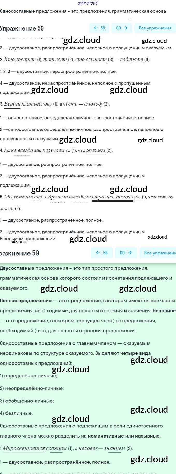 Ответ на задание 59 Учебник Русский язык за 8 (восьмой) класс Шмелёв, Флоренская, Кустова, Шмелёва Алгоритм успеха 2019