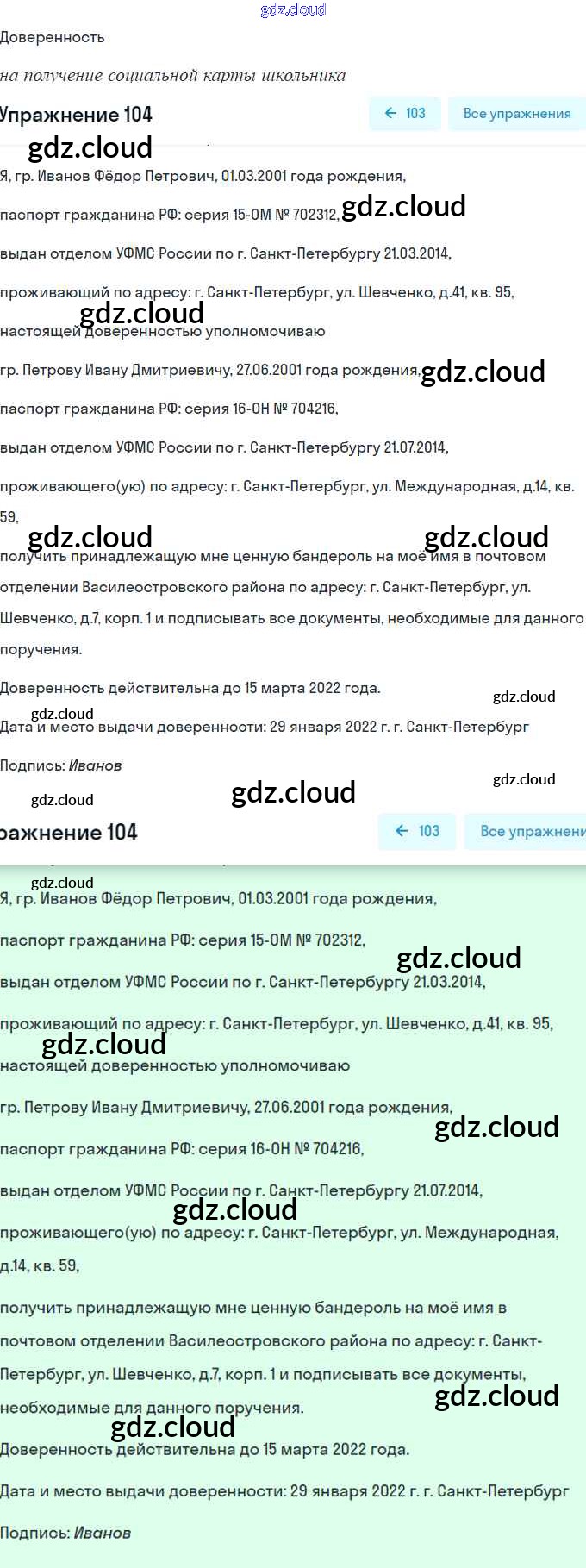 Ответ на задание 104 Учебник Русский язык за 8 (восьмой) класс Шмелёв, Флоренская, Кустова, Шмелёва Алгоритм успеха 2019