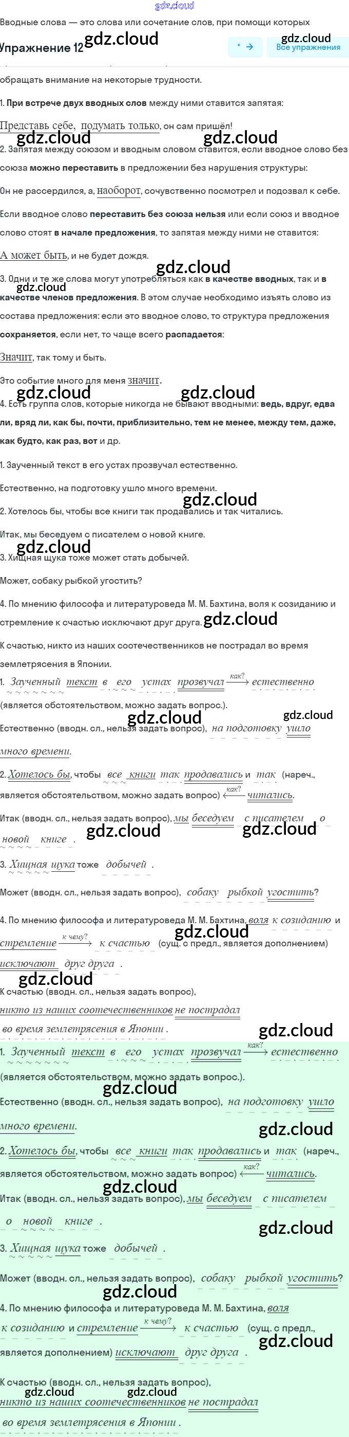 Ответ на задание 12 Учебник Русский язык за 8 (восьмой) класс Шмелёв, Флоренская, Кустова, Шмелёва Алгоритм успеха 2019