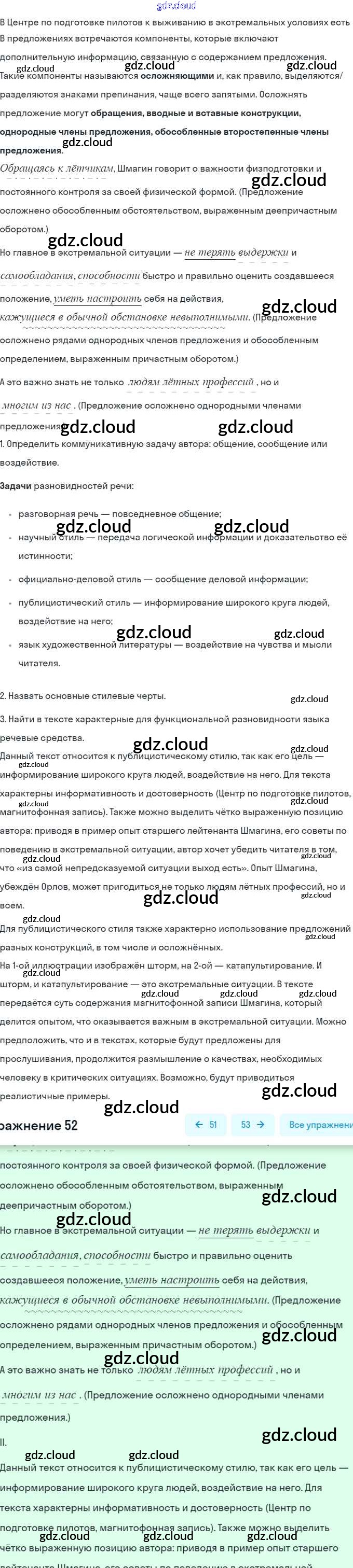 Ответ на задание 52 Учебник Русский язык за 8 (восьмой) класс Шмелёв, Флоренская, Кустова, Шмелёва Алгоритм успеха 2019