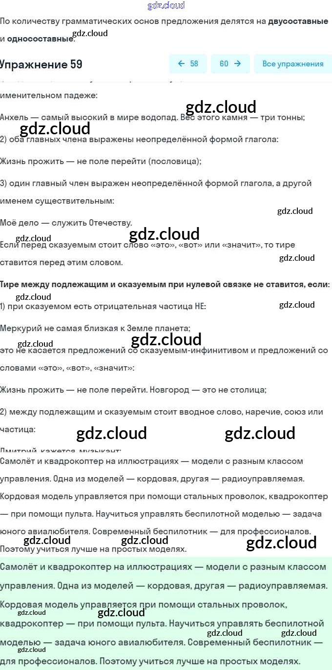 Ответ на задание 59 Учебник Русский язык за 8 (восьмой) класс Шмелёв, Флоренская, Кустова, Шмелёва Алгоритм успеха 2019