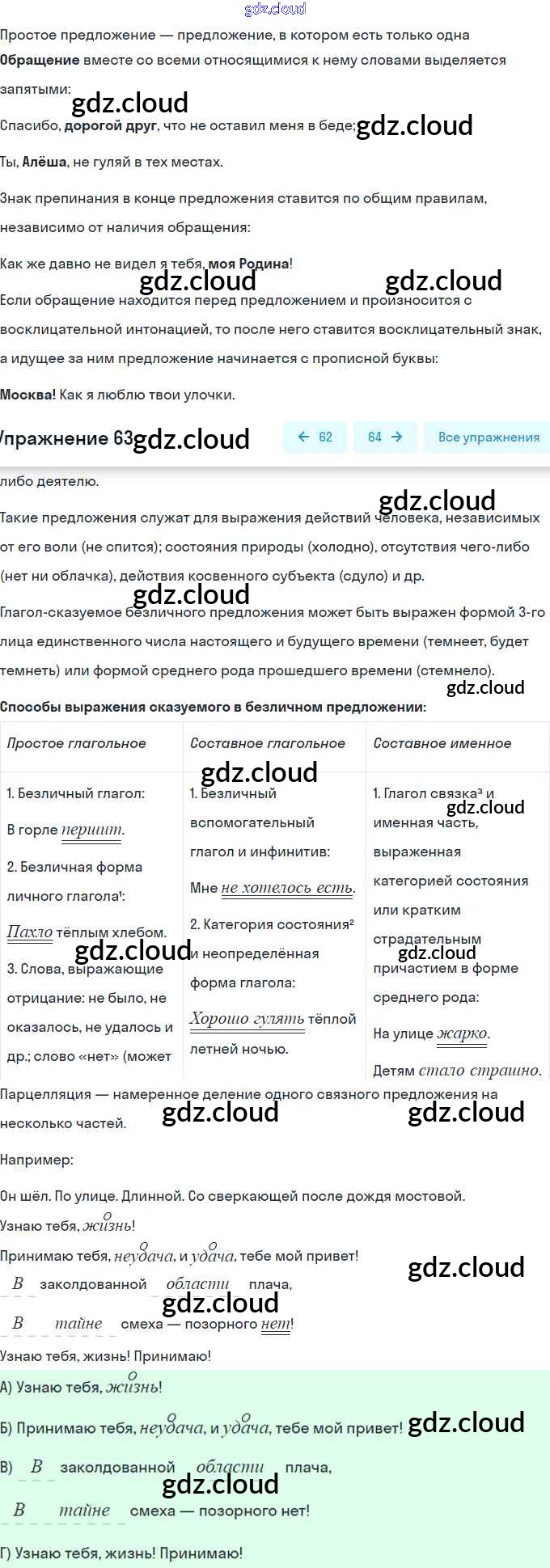 Ответ на задание 63 Учебник Русский язык за 8 (восьмой) класс Шмелёв, Флоренская, Кустова, Шмелёва Алгоритм успеха 2019