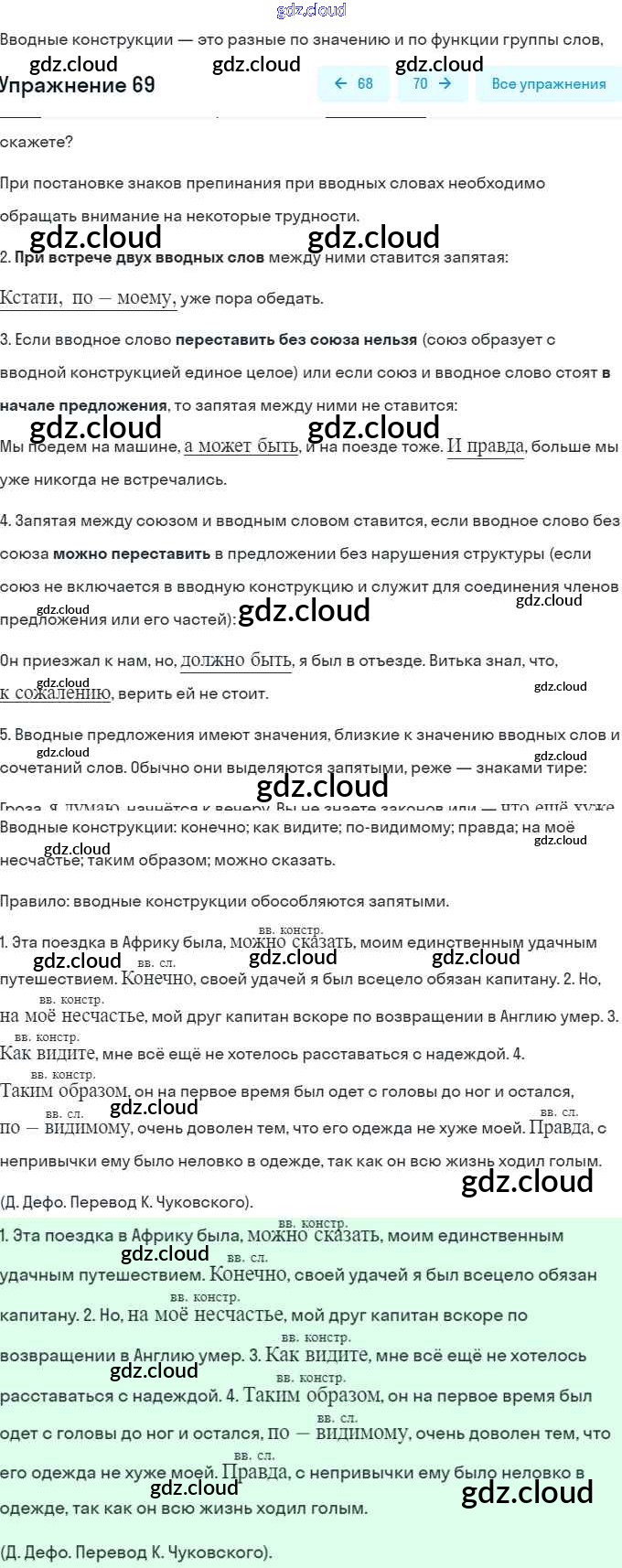 Ответ на задание 69 Учебник Русский язык за 8 (восьмой) класс Шмелёв, Флоренская, Кустова, Шмелёва Алгоритм успеха 2019