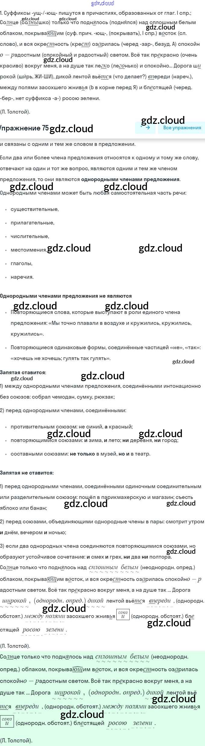Ответ на задание 75 Учебник Русский язык за 8 (восьмой) класс Шмелёв, Флоренская, Кустова, Шмелёва Алгоритм успеха 2019