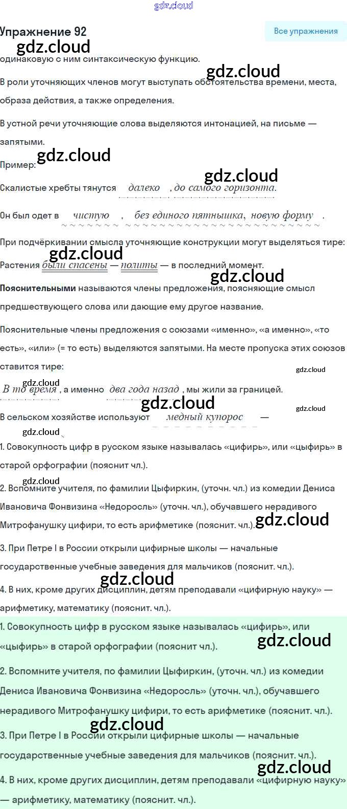 Ответ на задание 92 Учебник Русский язык за 8 (восьмой) класс Шмелёв, Флоренская, Кустова, Шмелёва Алгоритм успеха 2019