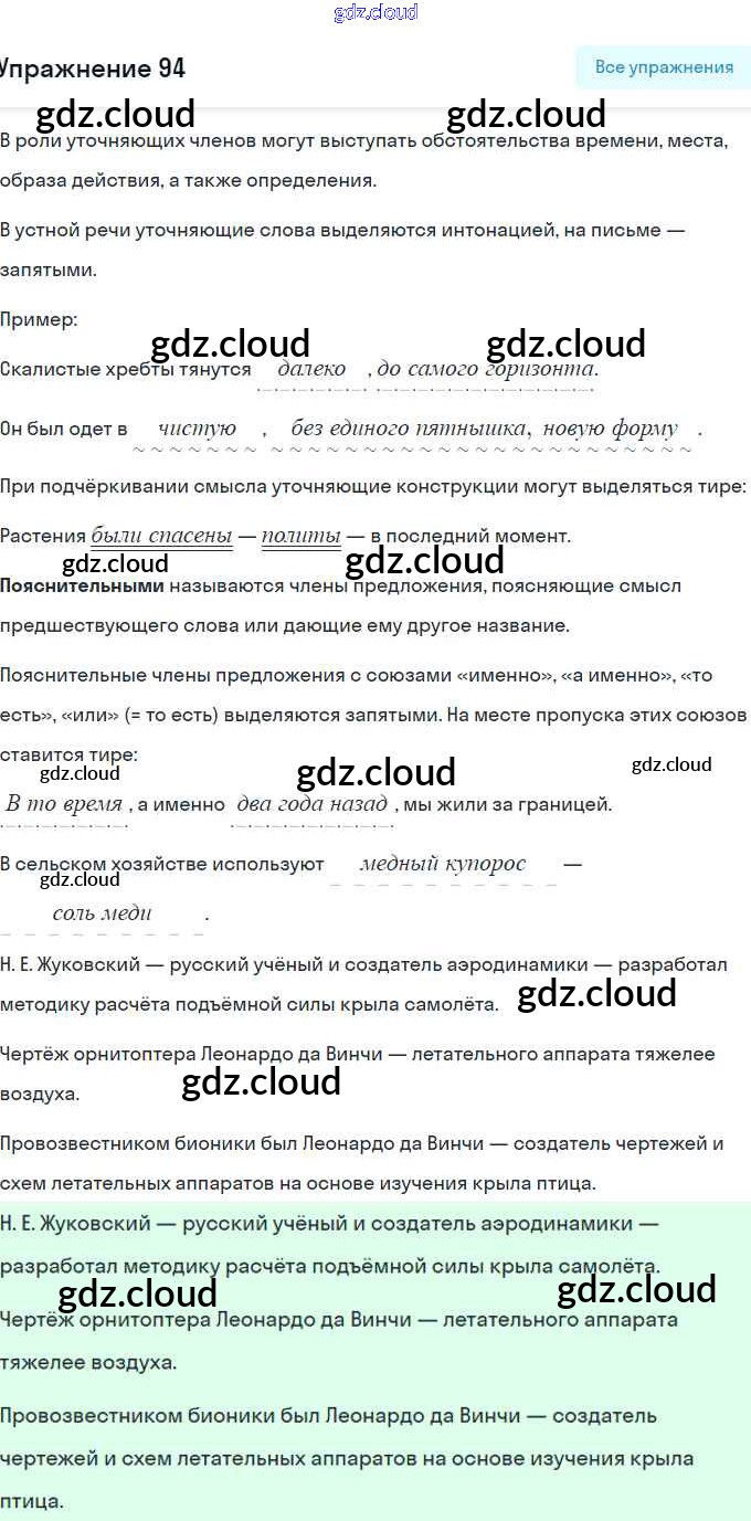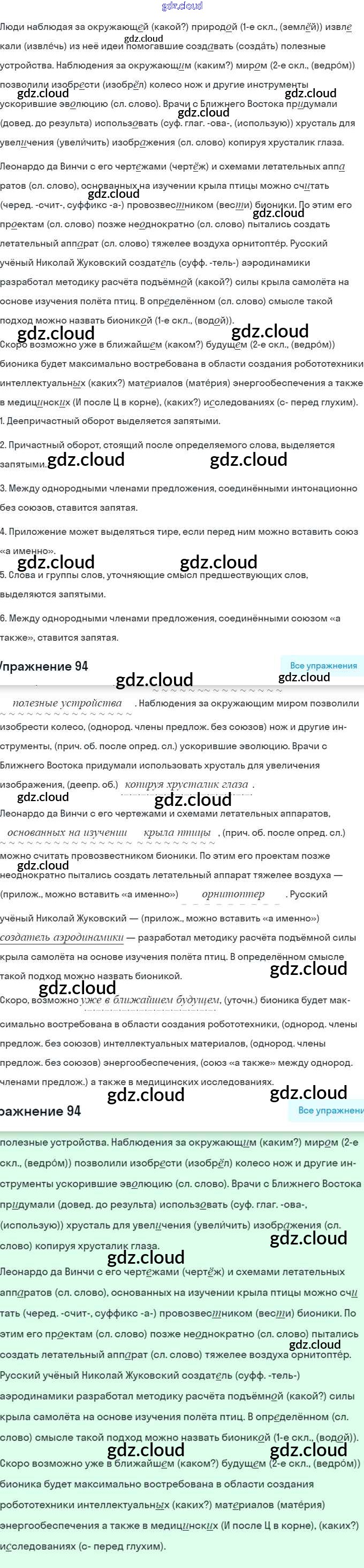 Ответ на задание 94 Учебник Русский язык за 8 (восьмой) класс Шмелёв, Флоренская, Кустова, Шмелёва Алгоритм успеха 2019