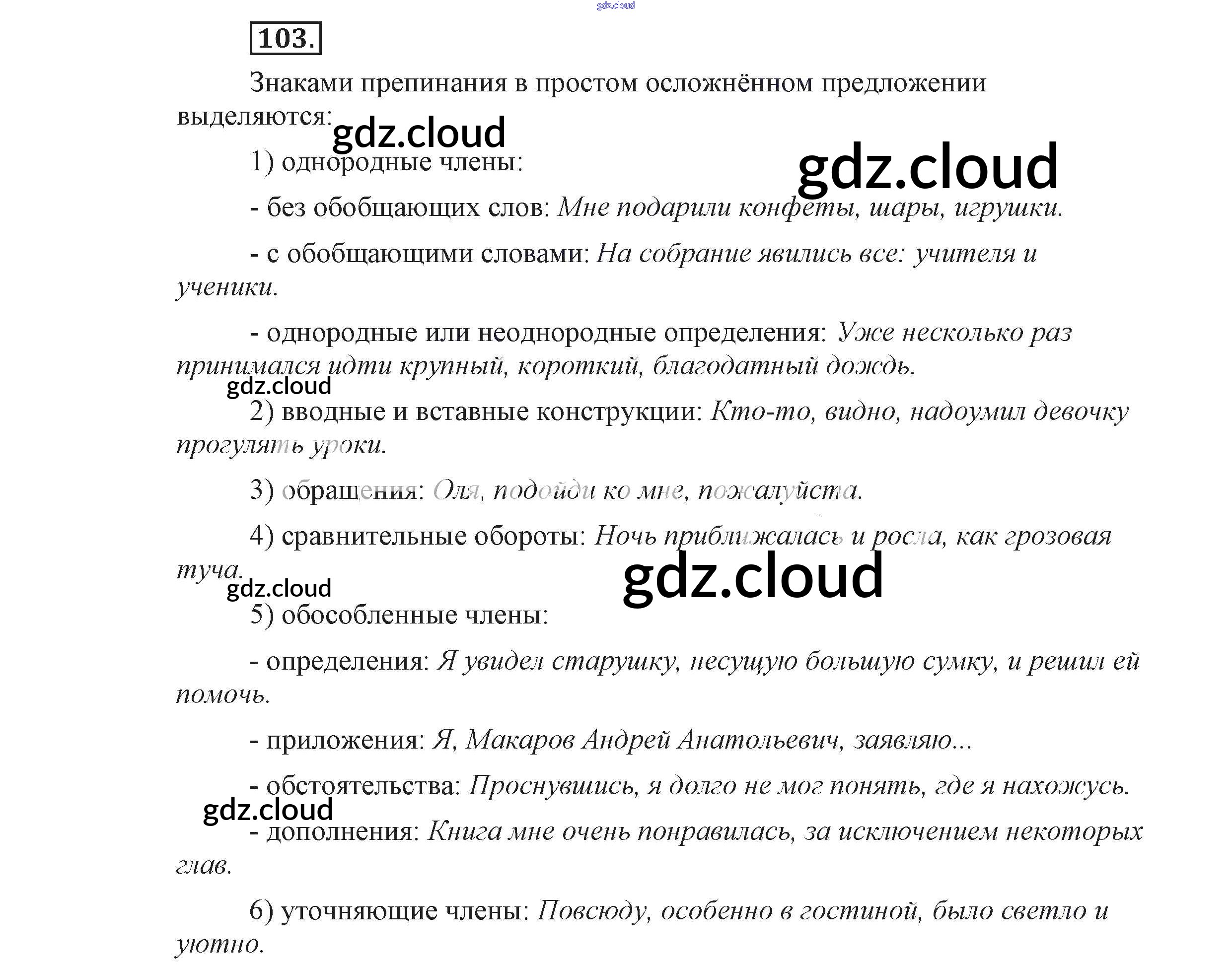 Ответ на задание 103 Учебник Русский язык за 9 (девятый) класс Львова, Львов 2016 Часть 1 ФГОС онлайн и без номера телефона.