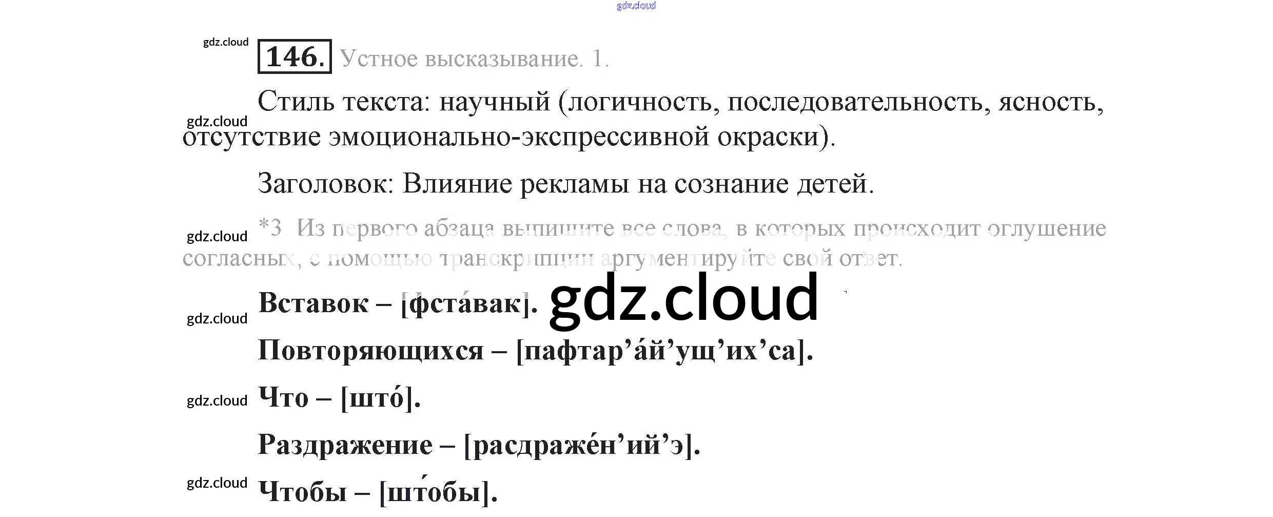 Ответ на задание 146 Учебник Русский язык за 9 (девятый) класс Львова, Львов 2016 Часть 1 ФГОС онлайн и без номера телефона.