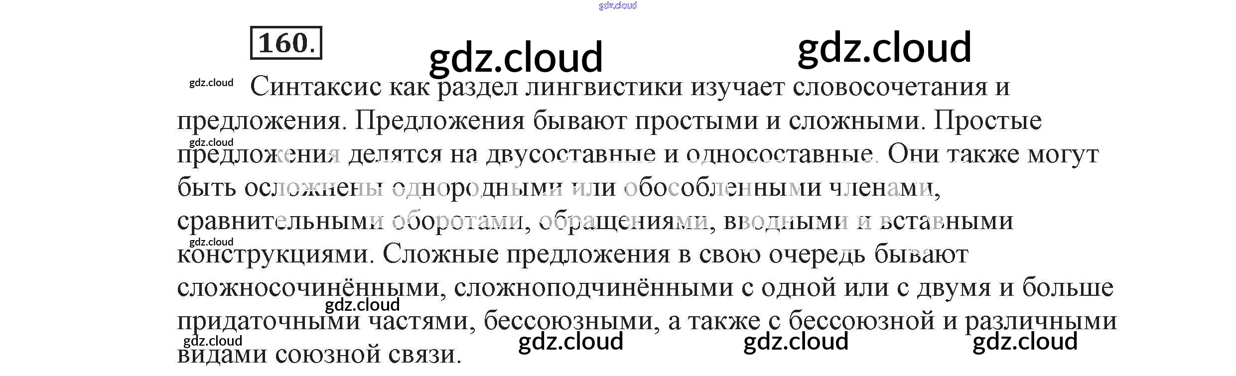 Ответ на задание 160 Учебник Русский язык за 9 (девятый) класс Львова, Львов 2016 Часть 1 ФГОС онлайн и без номера телефона.
