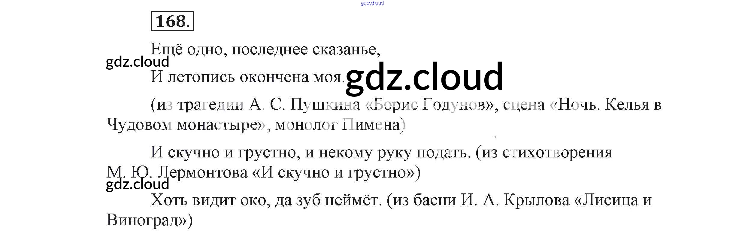 Ответ на задание 168 Учебник Русский язык за 9 (девятый) класс Львова, Львов 2016 Часть 1 ФГОС онлайн и без номера телефона.