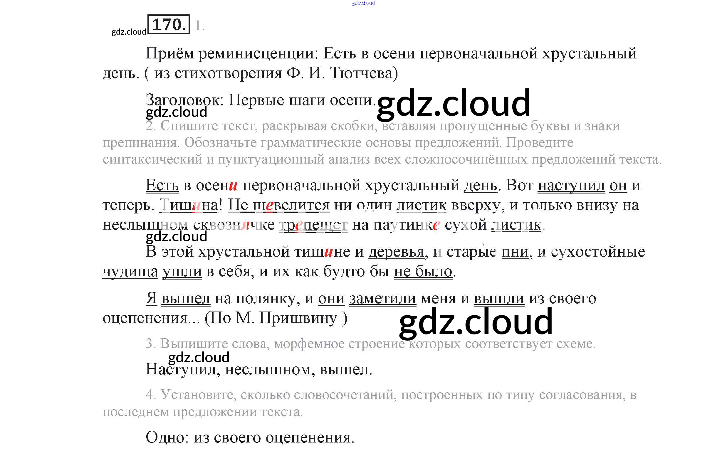 Ответ на задание 170 Учебник Русский язык за 9 (девятый) класс Львова, Львов 2016 Часть 1 ФГОС онлайн и без номера телефона.