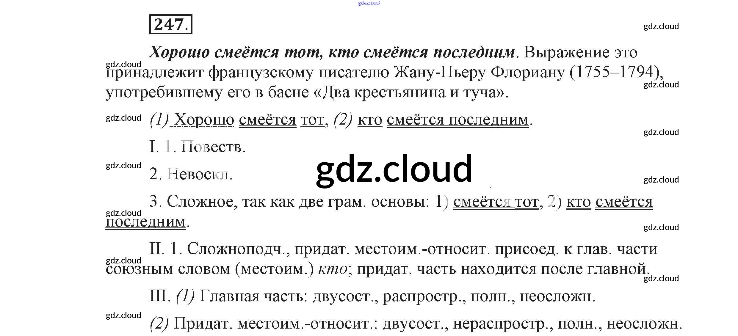 Ответ на задание 247 Учебник Русский язык за 9 (девятый) класс Львова, Львов 2016 Часть 1 ФГОС онлайн и без номера телефона.