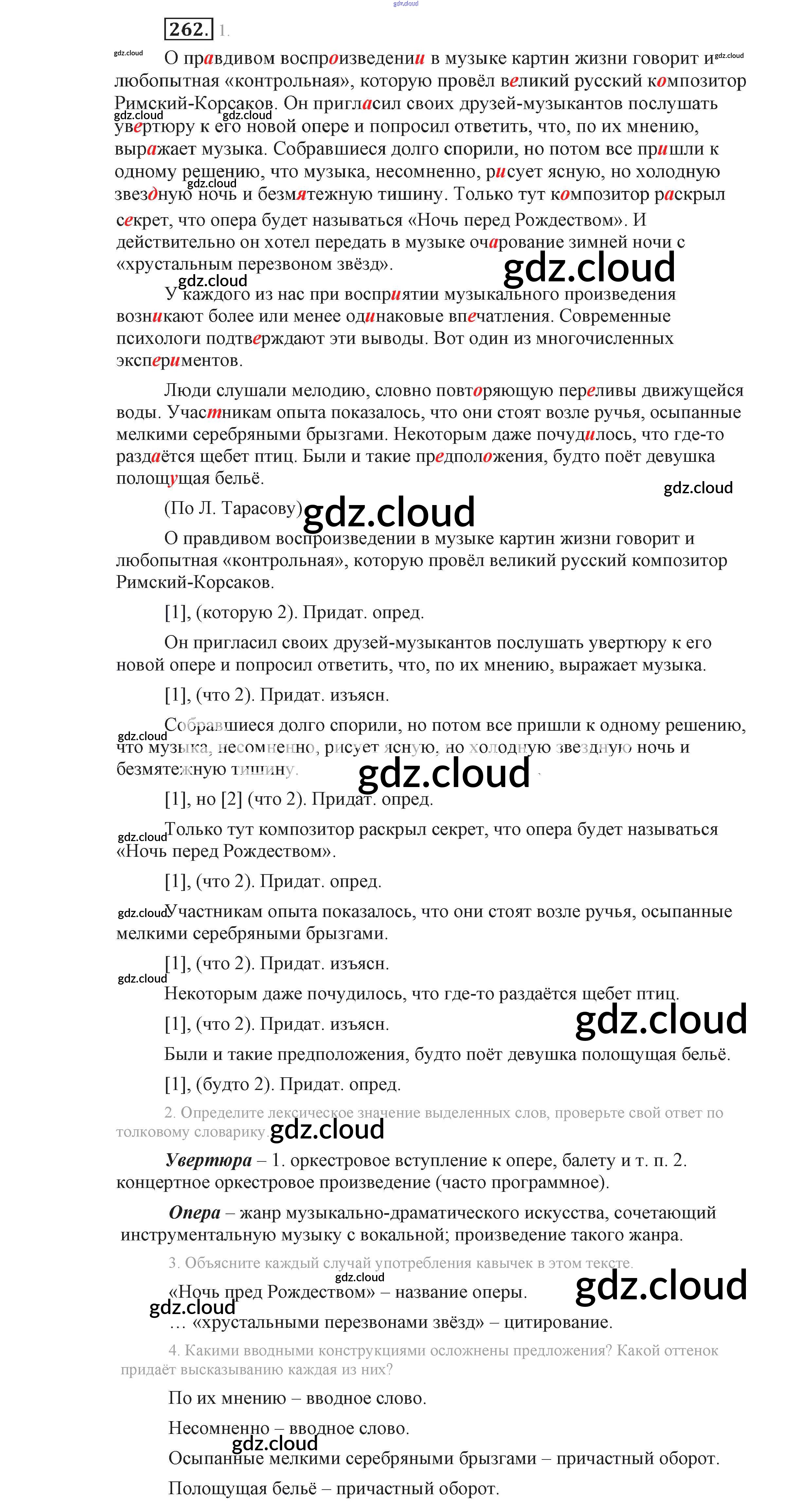 Ответ на задание 262 Учебник Русский язык за 9 (девятый) класс Львова, Львов 2016 Часть 1 ФГОС онлайн и без номера телефона.