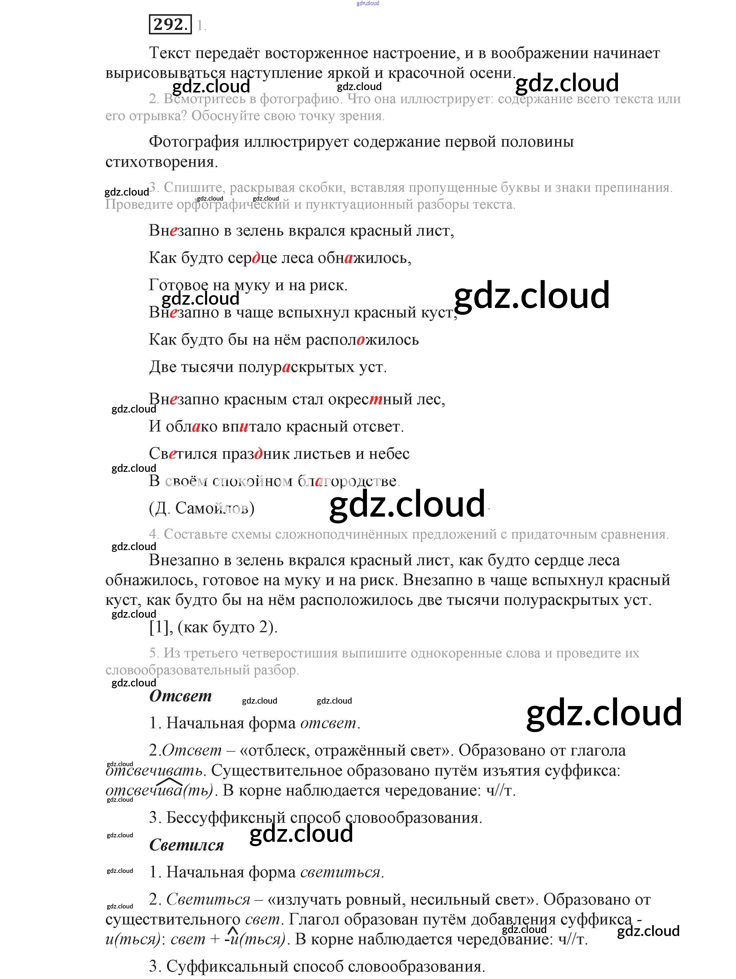 Ответ на задание 292 Учебник Русский язык за 9 (девятый) класс Львова, Львов 2016 Часть 1 ФГОС онлайн и без номера телефона.
