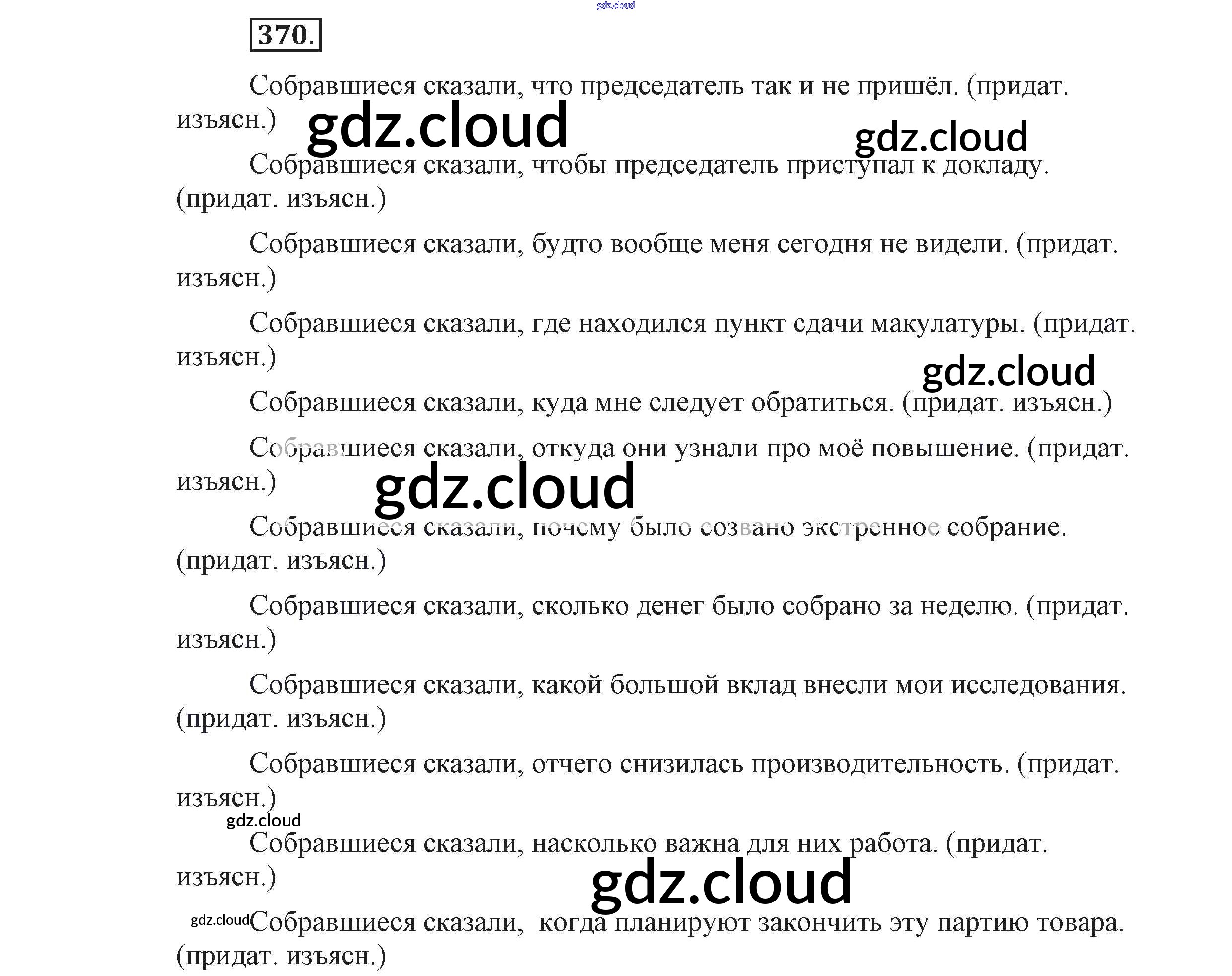 Ответ на задание 370 Учебник Русский язык за 9 (девятый) класс Львова, Львов 2016 Часть 1 ФГОС онлайн и без номера телефона.