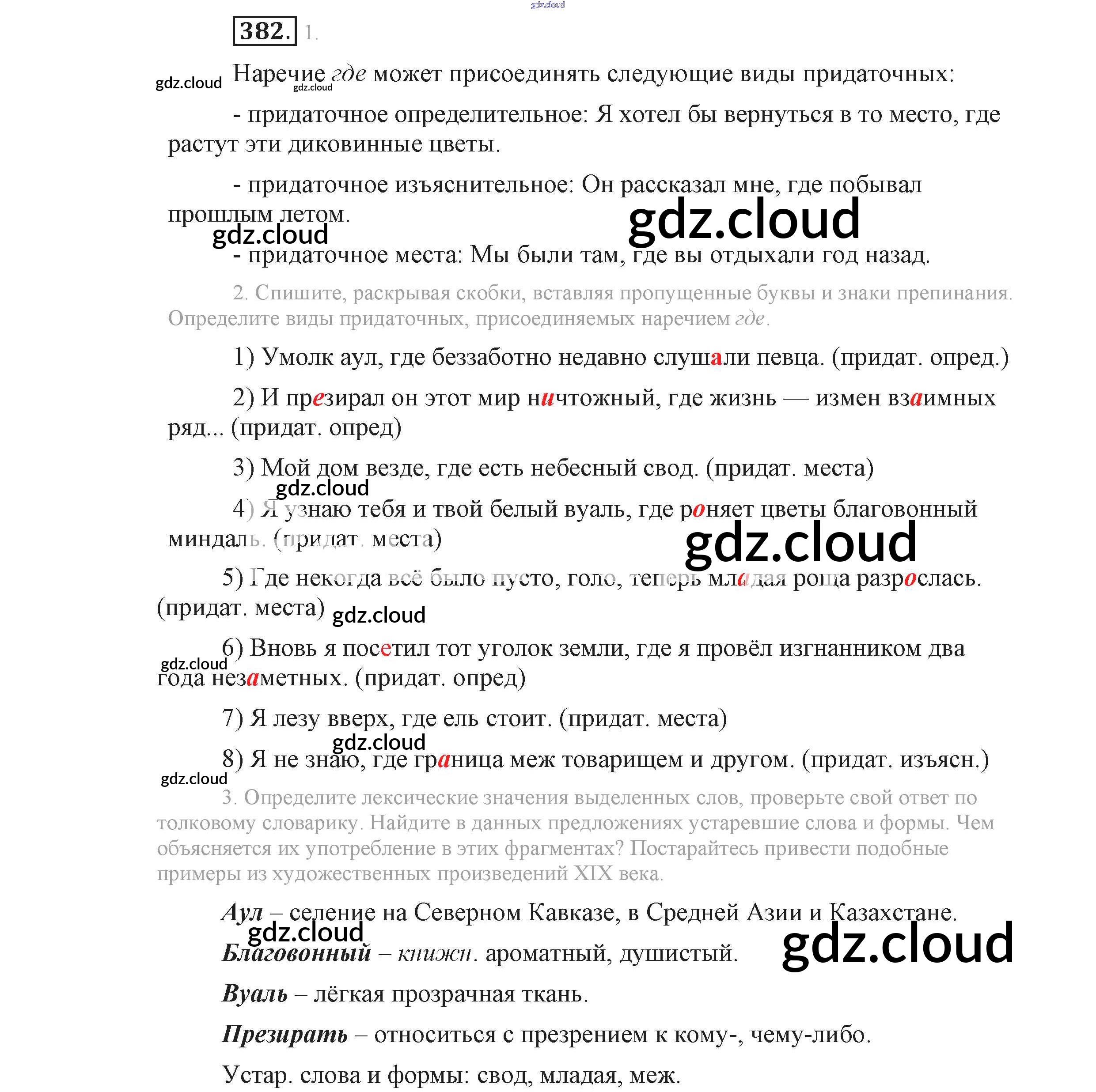 Ответ на задание 382 Учебник Русский язык за 9 (девятый) класс Львова, Львов 2016 Часть 1 ФГОС онлайн и без номера телефона.