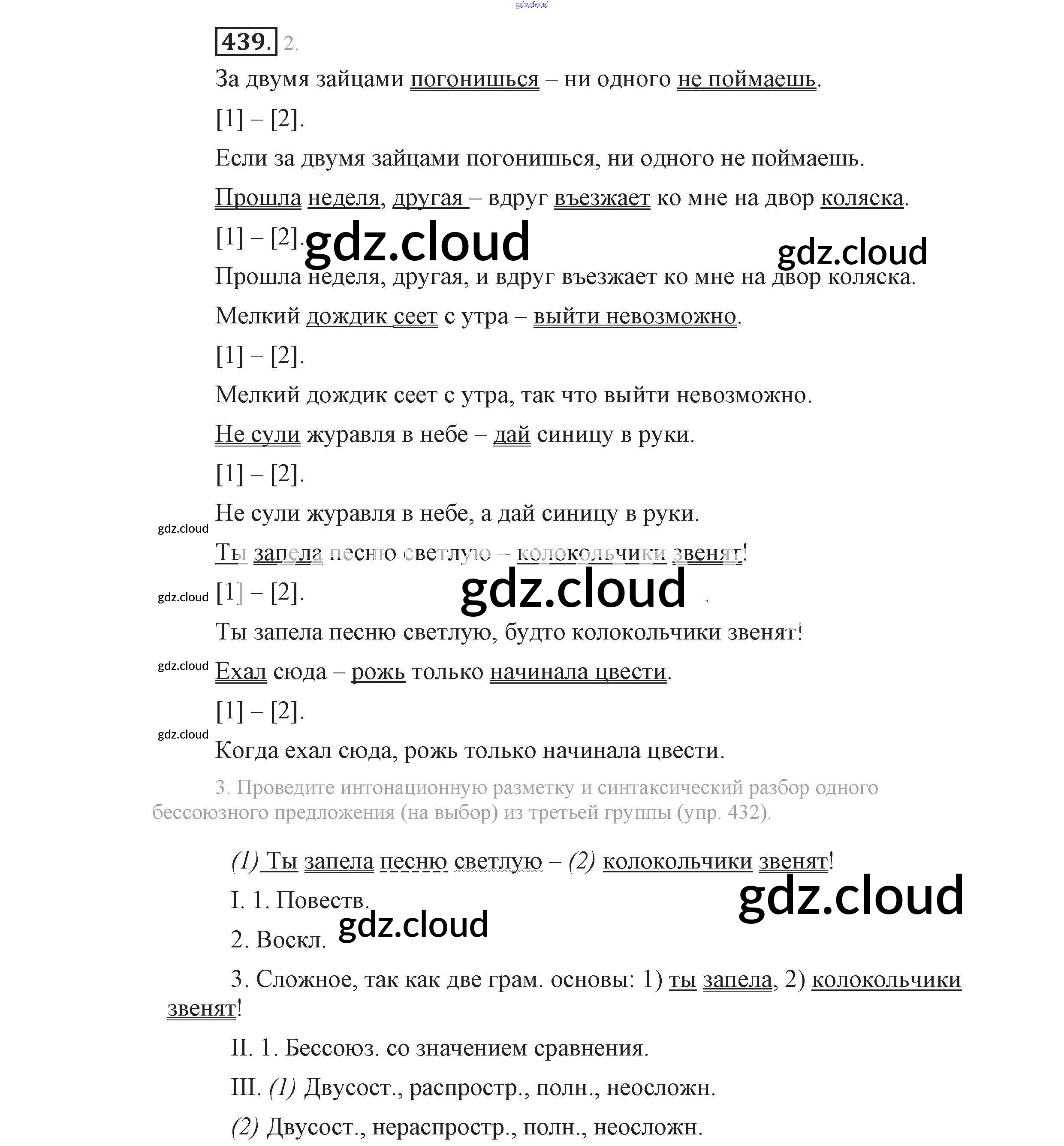 Ответ на задание 439 Учебник Русский язык за 9 (девятый) класс Львова, Львов 2016 Часть 1 ФГОС онлайн и без номера телефона.