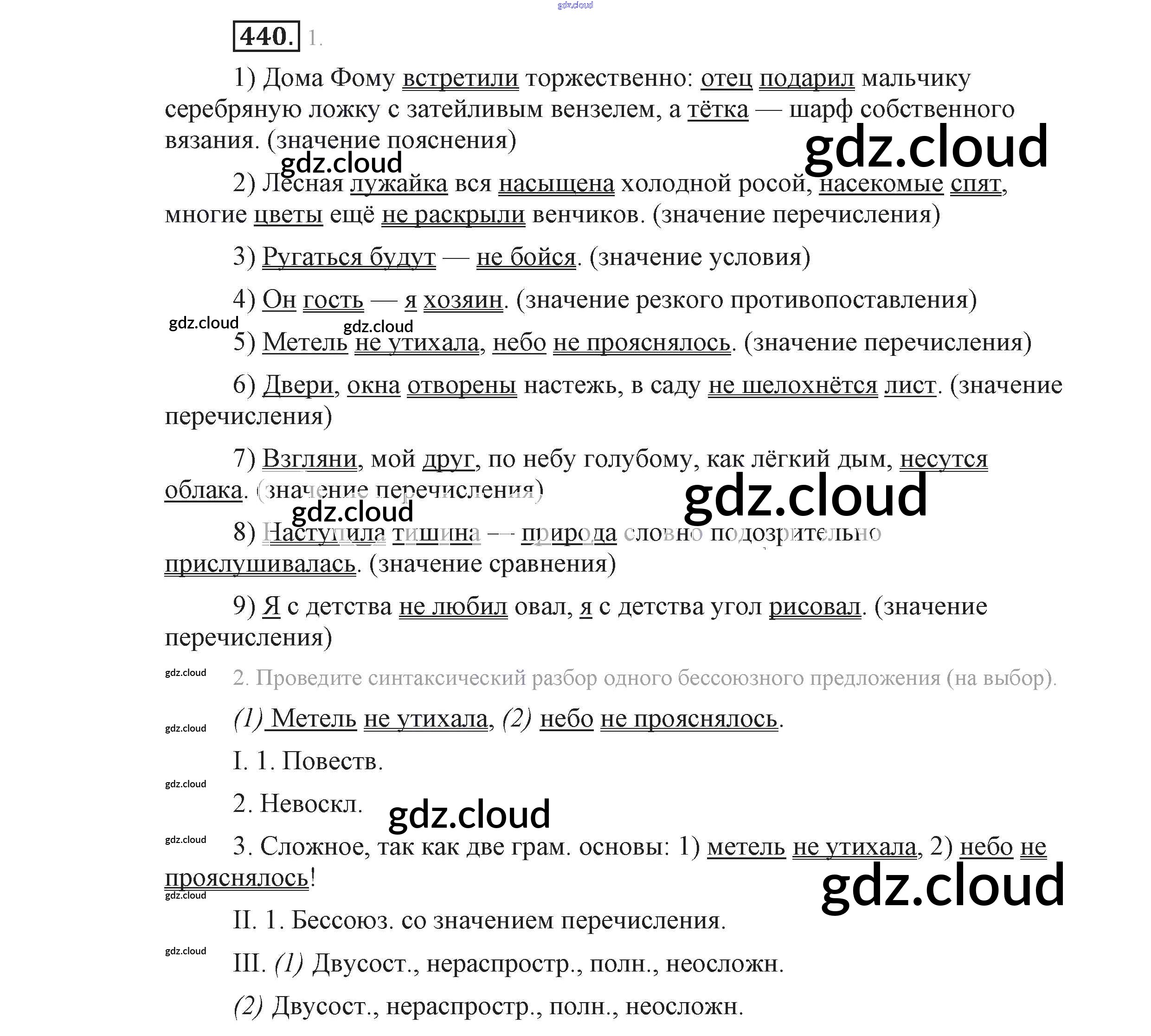 Ответ на задание 440 Учебник Русский язык за 9 (девятый) класс Львова, Львов 2016 Часть 1 ФГОС онлайн и без номера телефона.