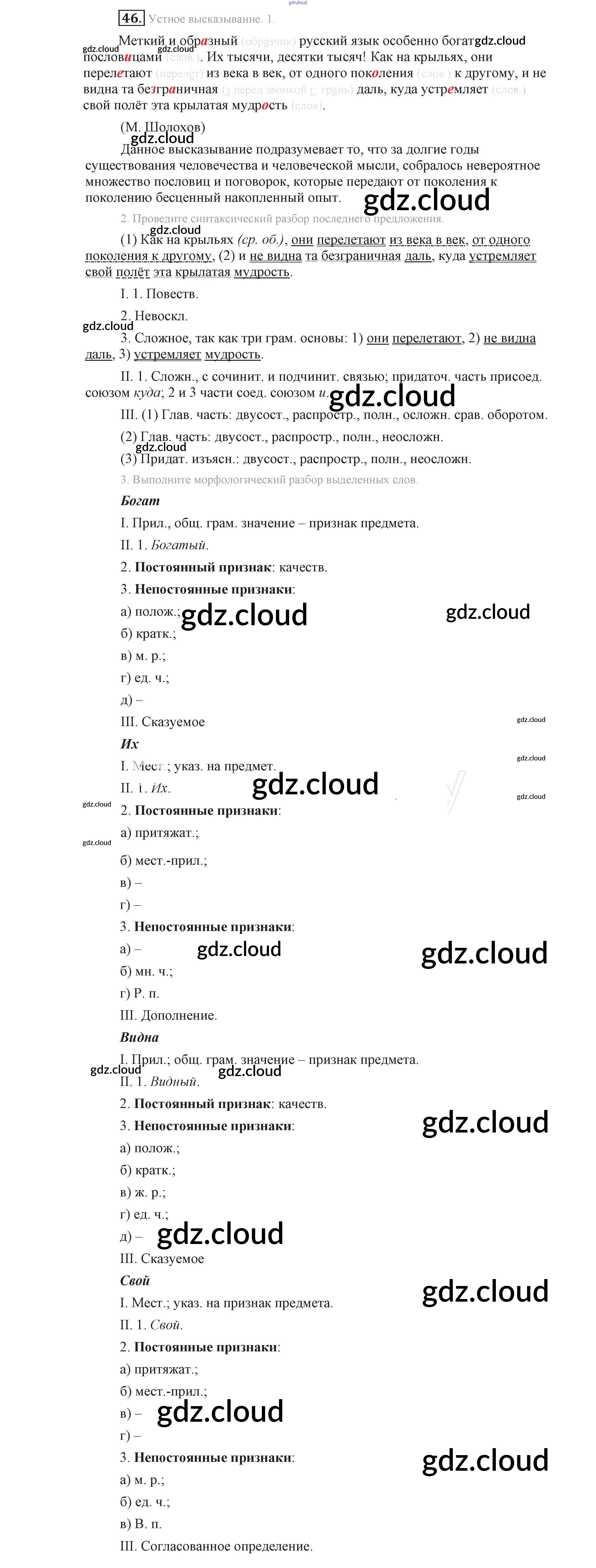 Ответ на задание 46 Учебник Русский язык за 9 (девятый) класс Львова, Львов 2016 Часть 1 ФГОС онлайн и без номера телефона.