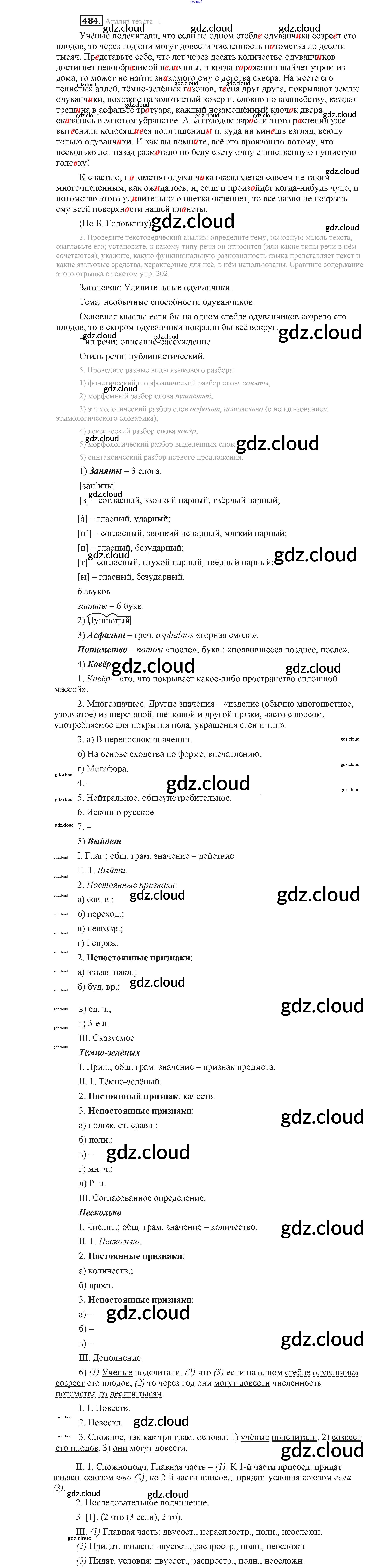 Ответ на задание 484 Учебник Русский язык за 9 (девятый) класс Львова, Львов 2016 Часть 1 ФГОС онлайн и без номера телефона.