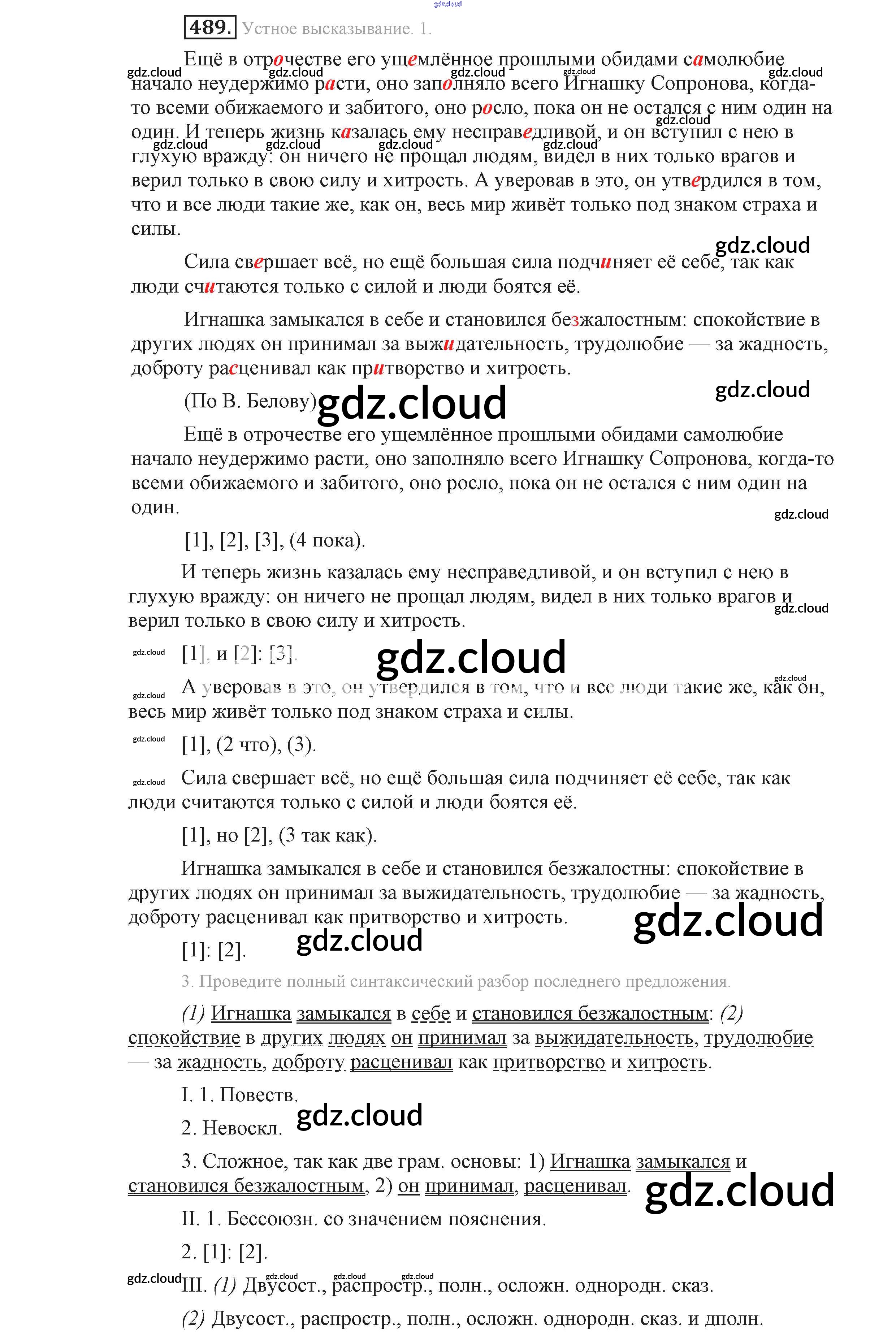 Ответ на задание 489 Учебник Русский язык за 9 (девятый) класс Львова, Львов 2016 Часть 1 ФГОС онлайн и без номера телефона.