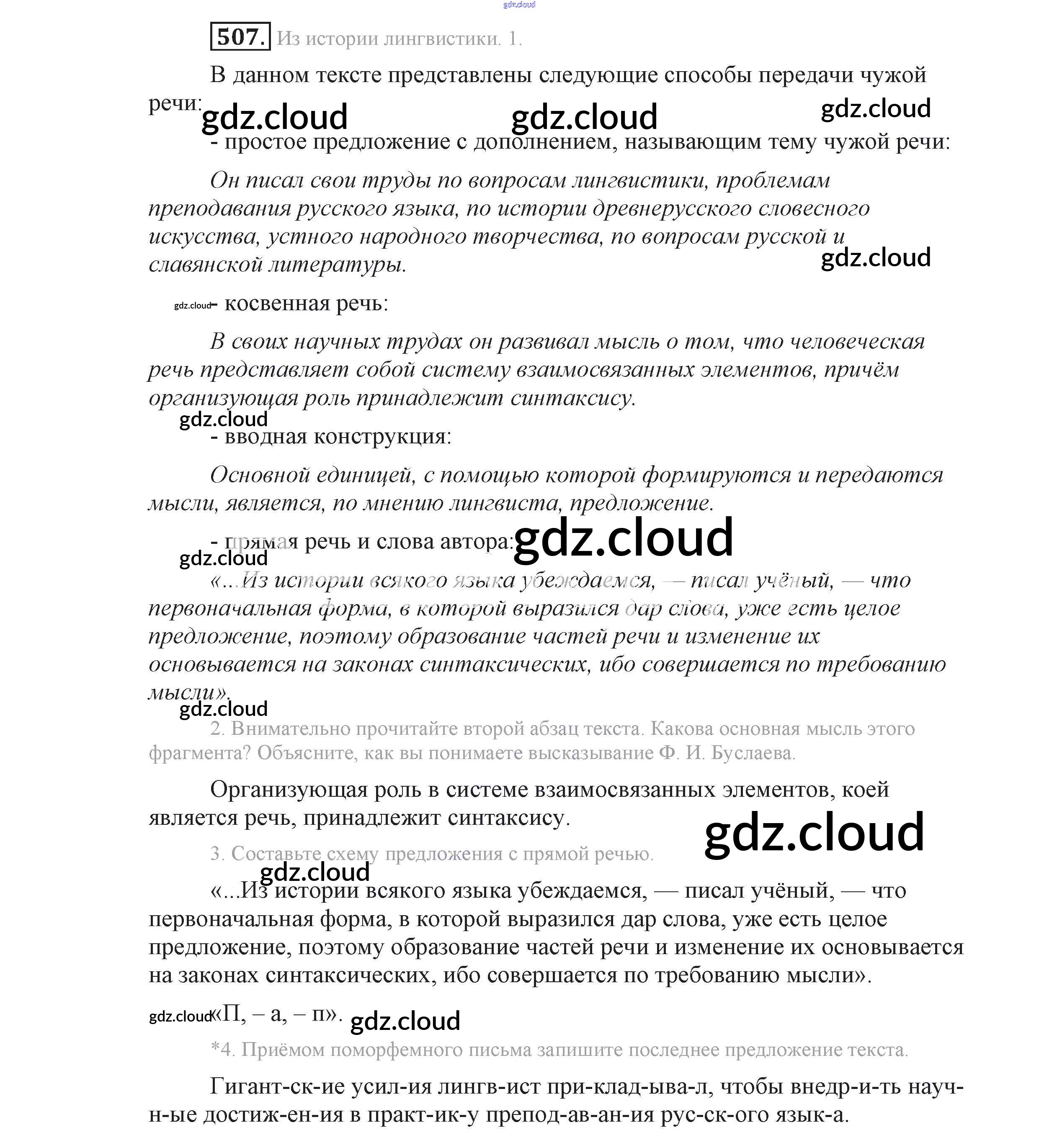 Ответ на задание 507 Учебник Русский язык за 9 (девятый) класс Львова, Львов 2016 Часть 1 ФГОС онлайн и без номера телефона.
