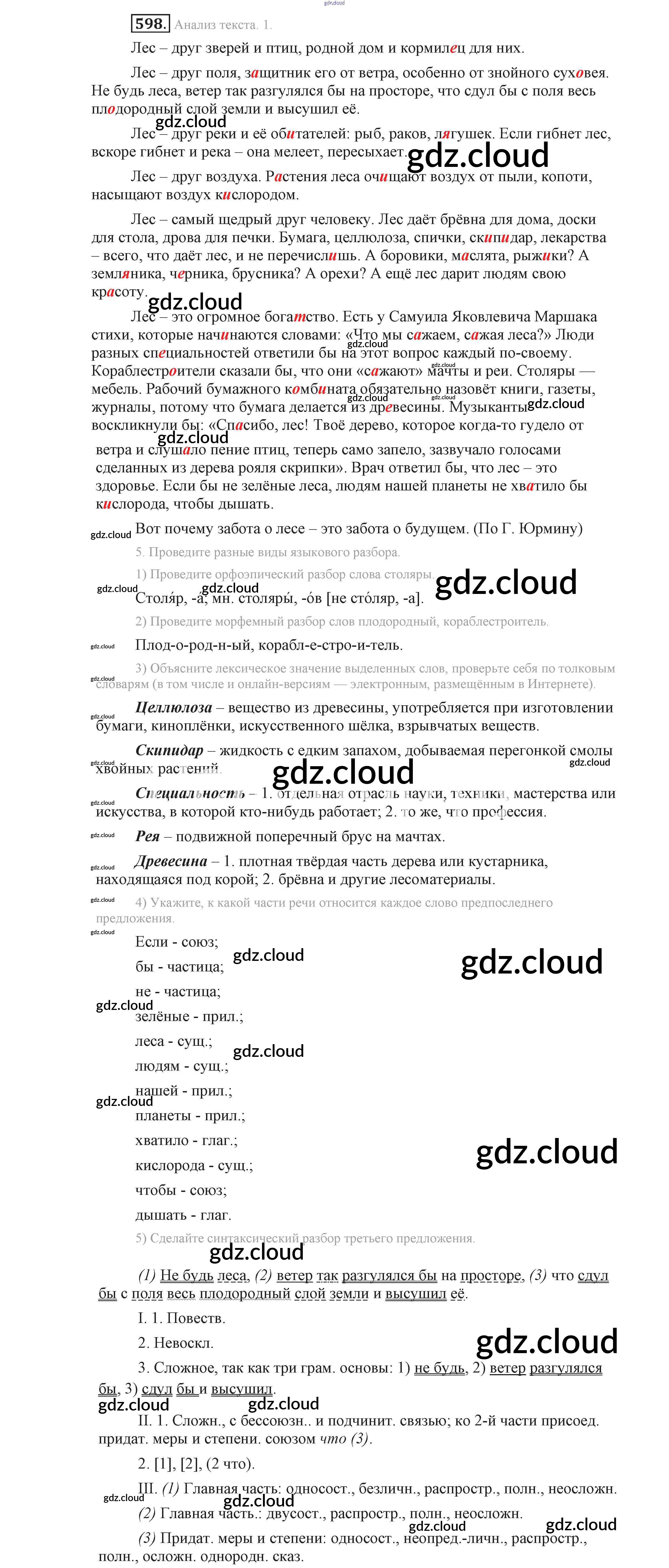 Ответ на задание 598 Учебник Русский язык за 9 (девятый) класс Львова, Львов 2016 Часть 1 ФГОС онлайн и без номера телефона.