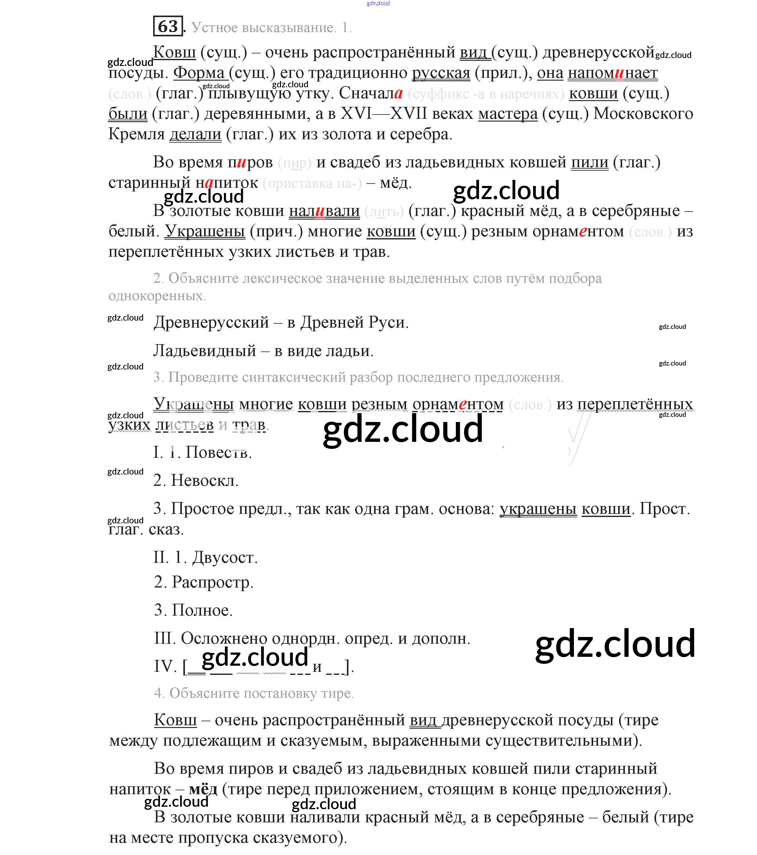 Ответ на задание 63 Учебник Русский язык за 9 (девятый) класс Львова, Львов 2016 Часть 1 ФГОС онлайн и без номера телефона.