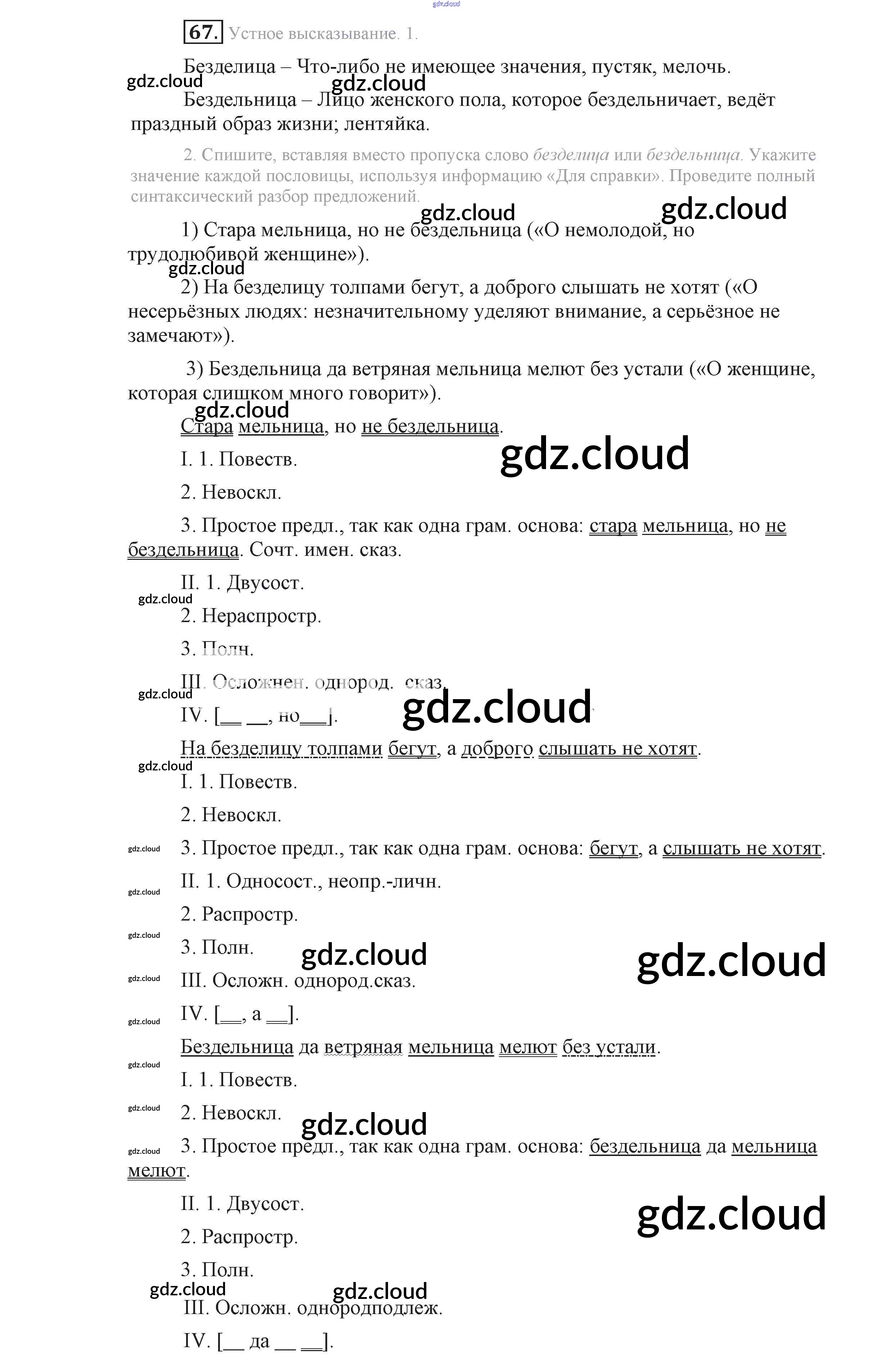 Ответ на задание 67 Учебник Русский язык за 9 (девятый) класс Львова, Львов 2016 Часть 1 ФГОС онлайн и без номера телефона.