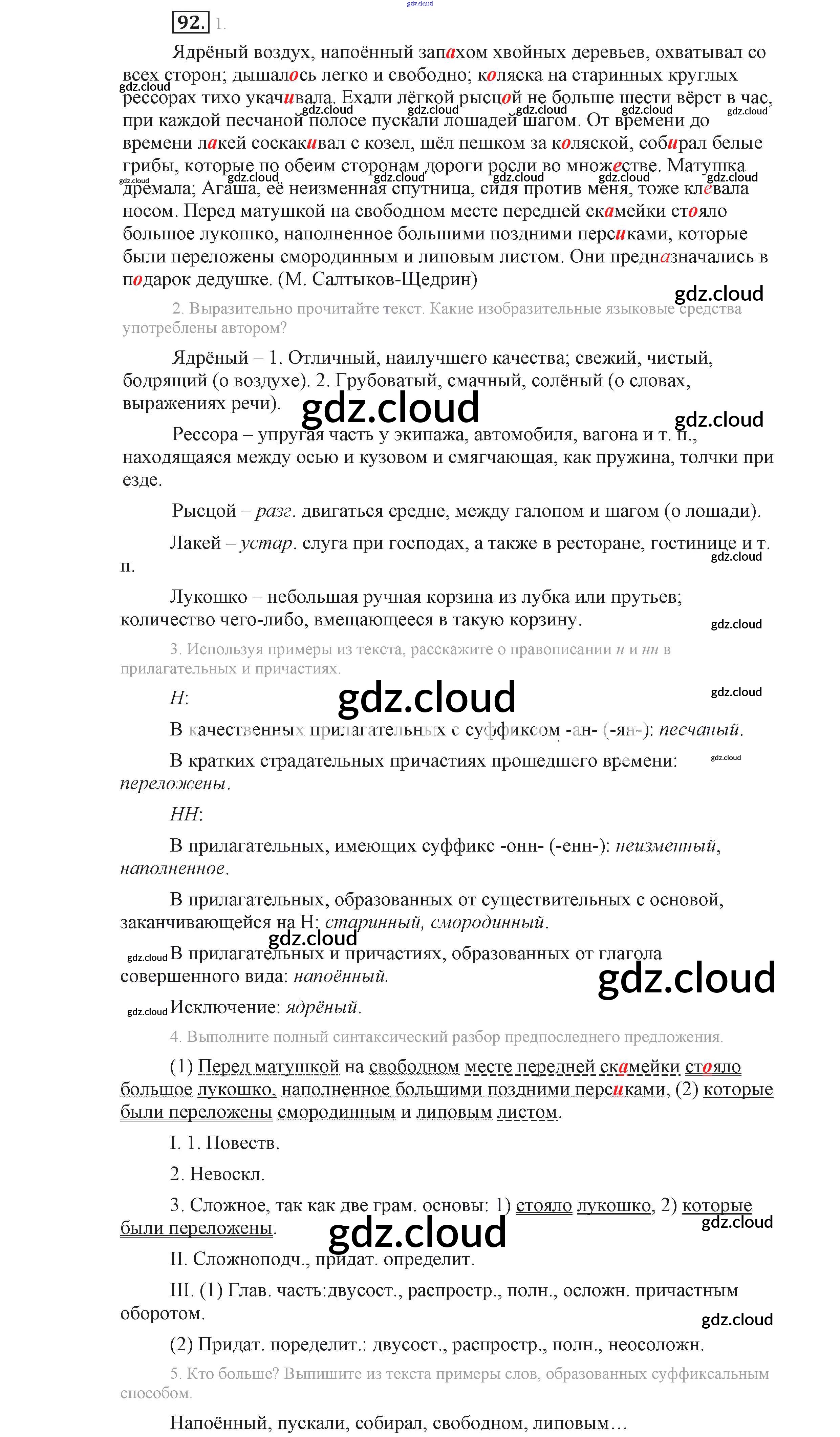 Ответ на задание 92 Учебник Русский язык за 9 (девятый) класс Львова, Львов 2016 Часть 1 ФГОС онлайн и без номера телефона.