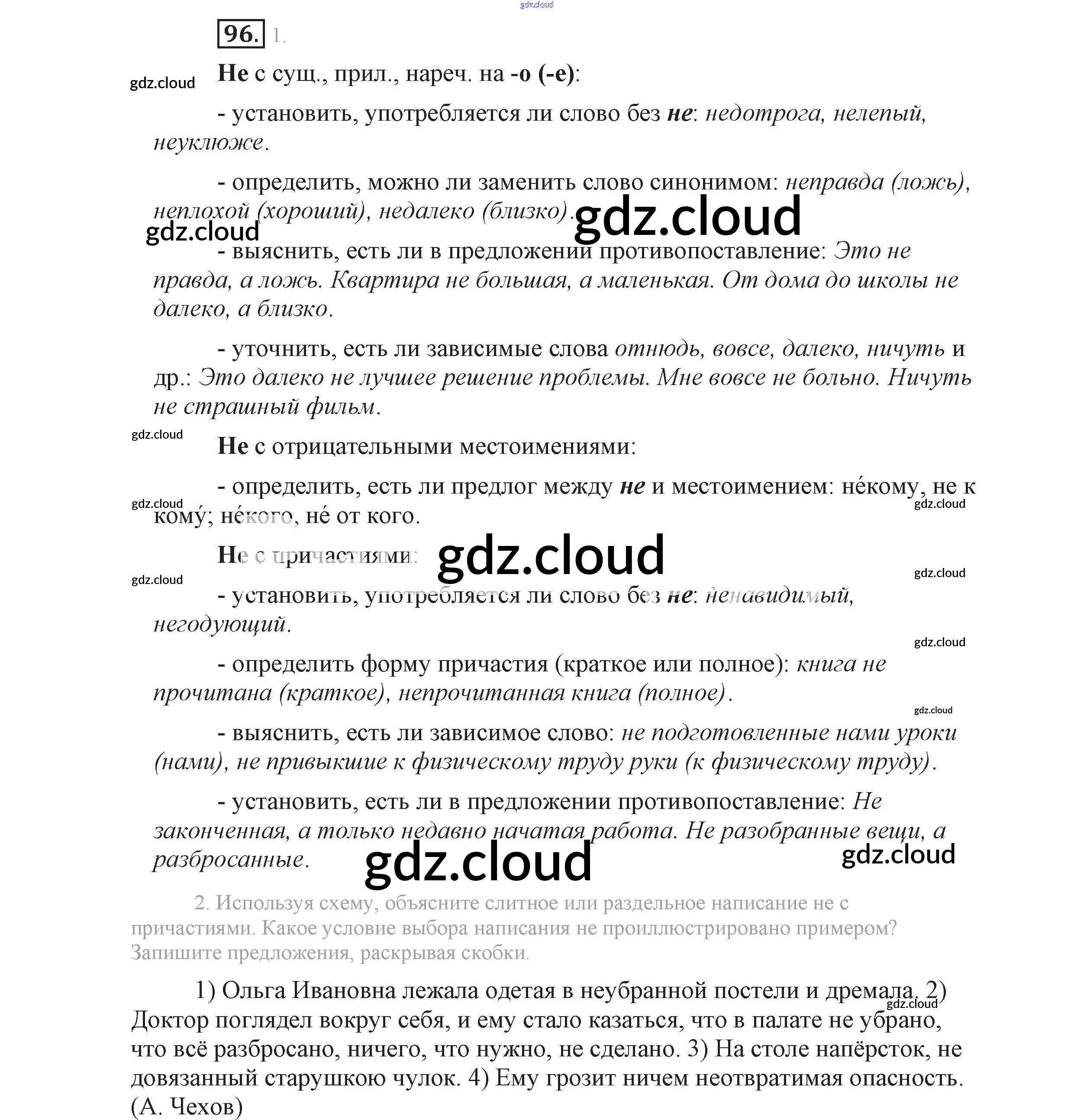 Ответ на задание 96 Учебник Русский язык за 9 (девятый) класс Львова, Львов 2016 Часть 1 ФГОС онлайн и без номера телефона.