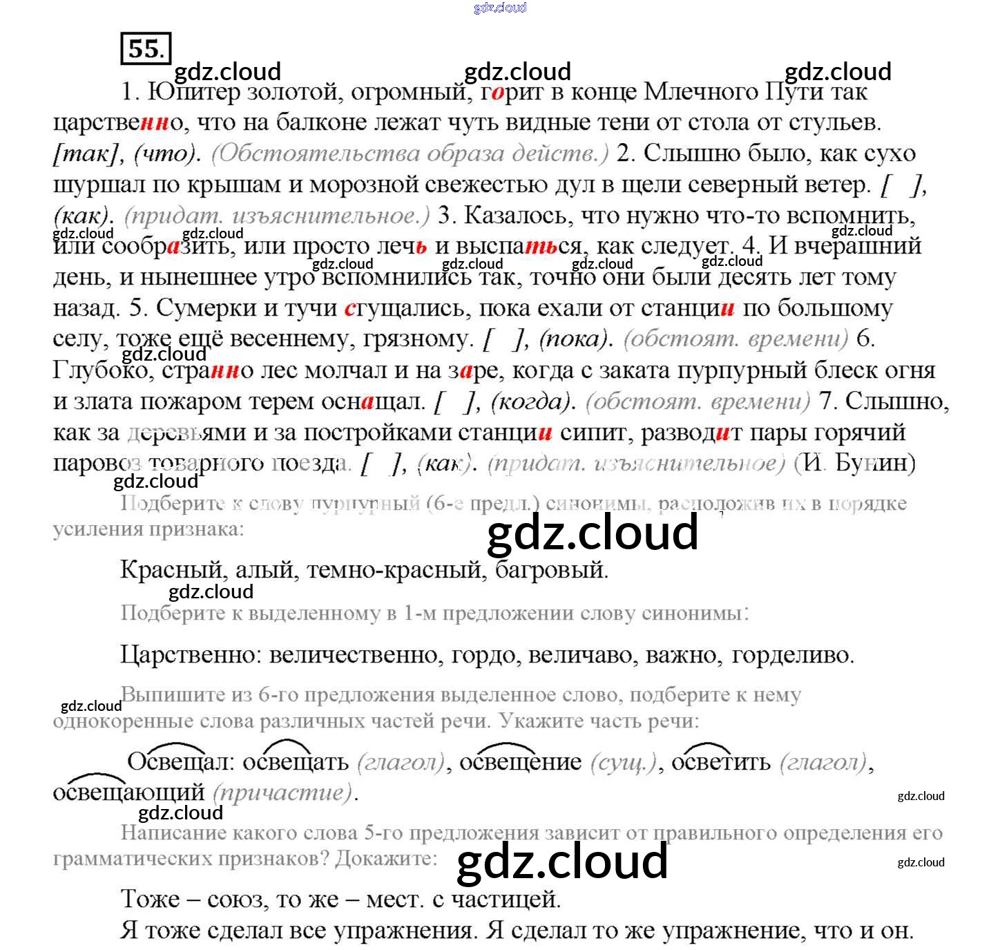 Ответ на задание 55 Рабочая тетрадь Русский язык за 9 (девятый) класс Богданова 2017 Часть 1, 2, 3