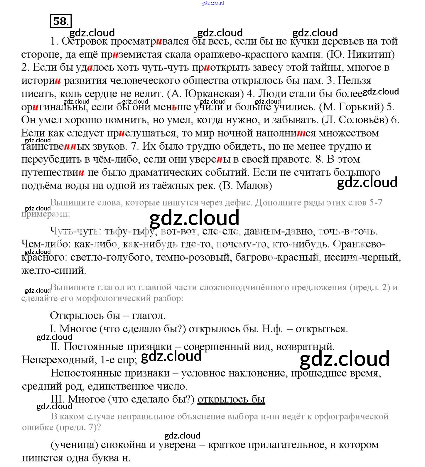 Ответ на задание 58 Рабочая тетрадь Русский язык за 9 (девятый) класс Богданова 2017 Часть 1, 2, 3