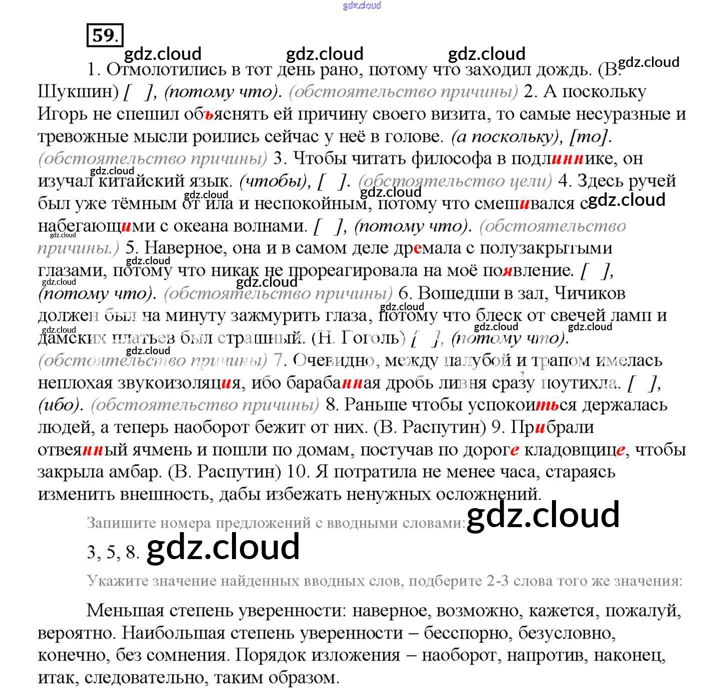 Ответ на задание 59 Рабочая тетрадь Русский язык за 9 (девятый) класс Богданова 2017 Часть 1, 2, 3
