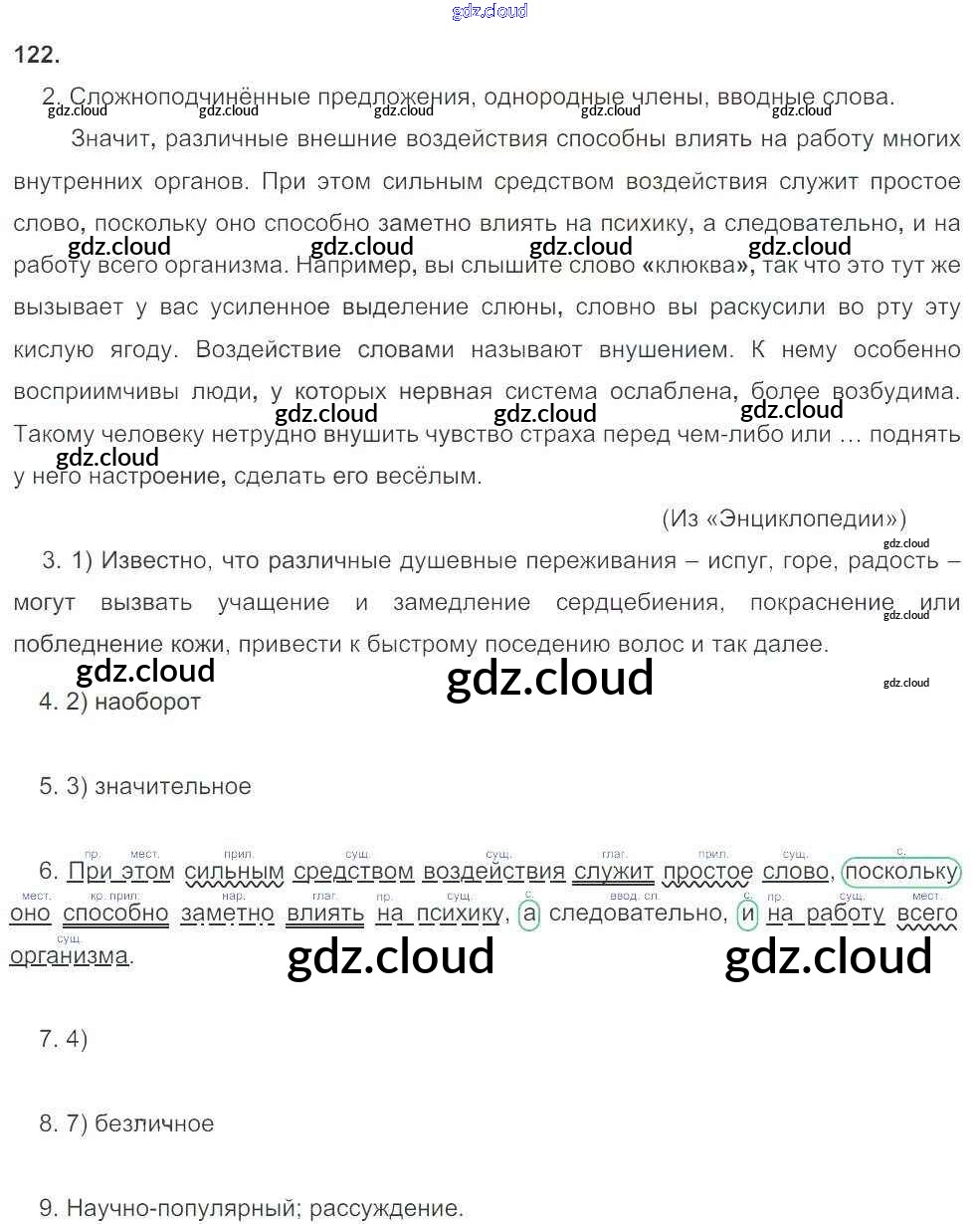 Ответ на задание 122 Рабочая тетрадь Русский язык за 9 (девятый) класс Литвинова Вертикаль 2016