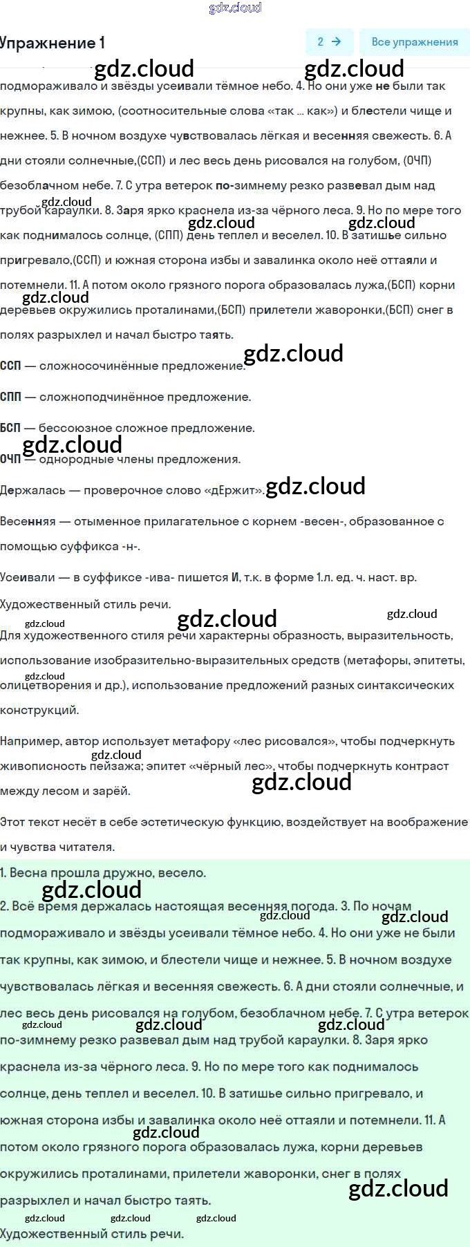 Ответ на задание 1 Рабочая тетрадь Русский язык за 9 (девятый) класс Загоровская, Чаплыгина 2017 Часть 1, 2