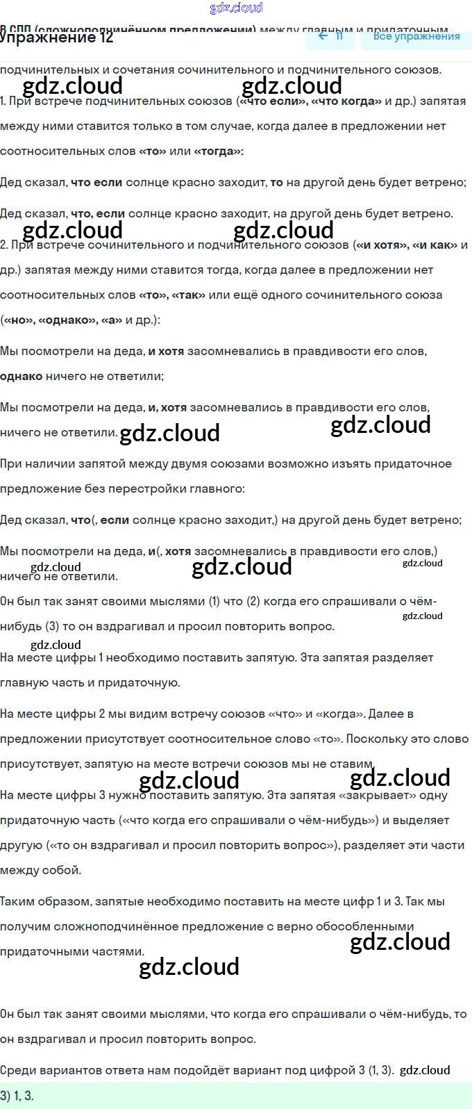 итоговый тест по теме «сложноподчинённое предложение» / вариант 1 / 12