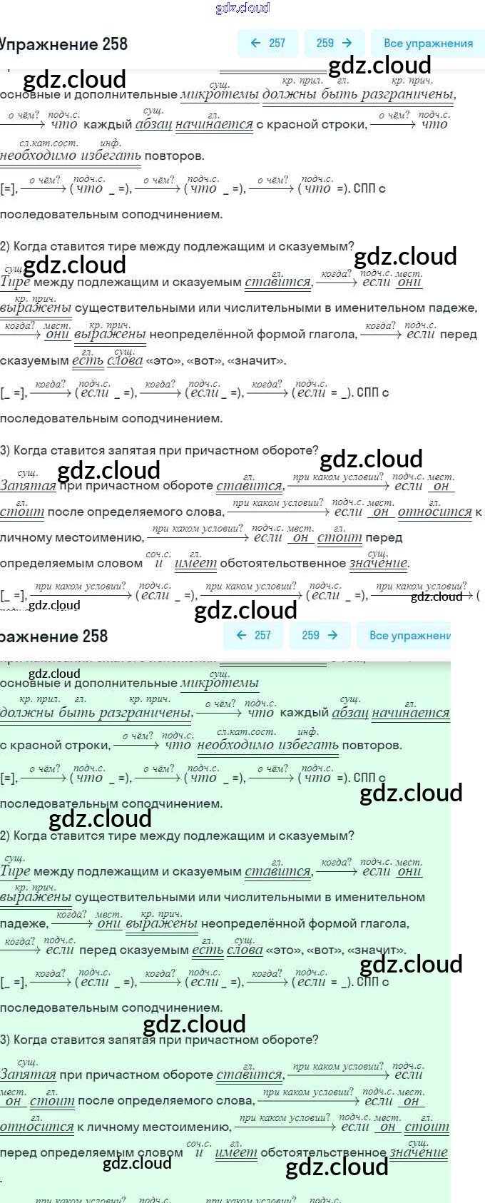 Ответ на задание 258 Учебник Русский язык за 9 (девятый) класс Разумовская, Львова, Капинос, Львов Вертикаль 2018, 2021