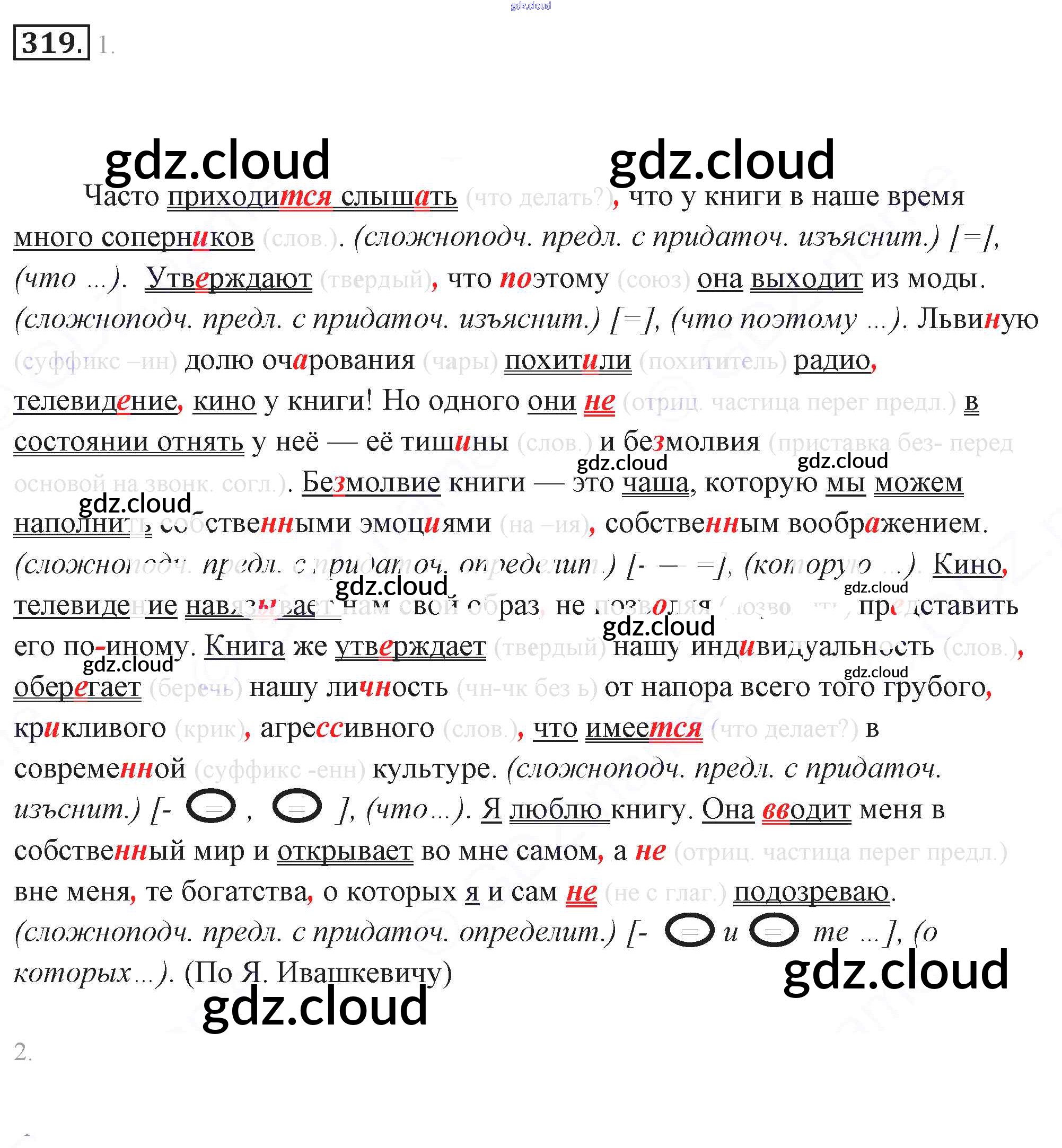 Ответ на задание 319 Учебник Русский язык за 9 (девятый) класс Разумовская, Львова, Капинос, Львов Вертикаль 2018, 2021