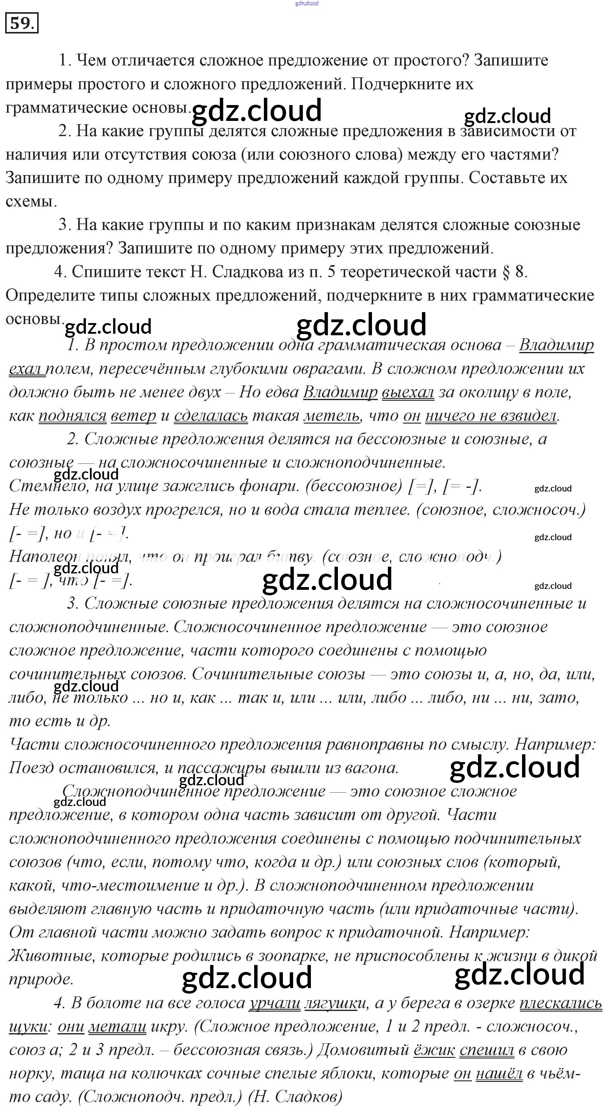 Ответ на задание 59 Учебник Русский язык за 9 (девятый) класс Разумовская, Львова, Капинос, Львов Вертикаль 2018, 2021