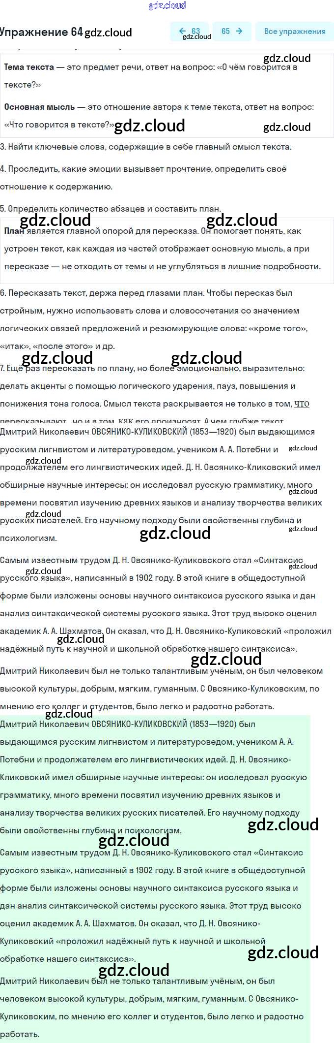 Ответ на задание 64 Учебник Русский язык за 9 (девятый) класс Разумовская, Львова, Капинос, Львов Вертикаль 2018, 2021