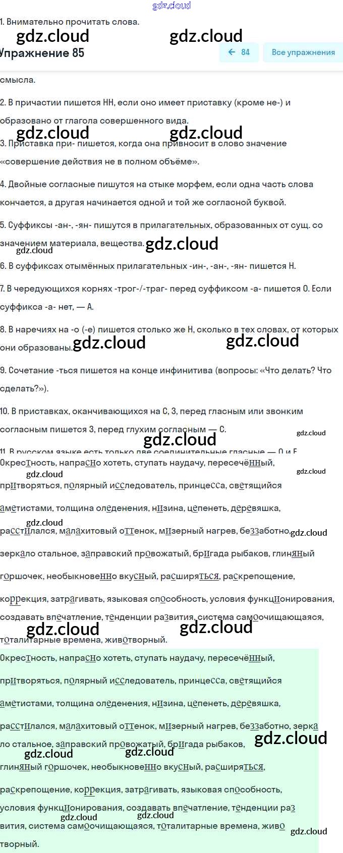 Ответ на задание 85 Учебник Русский язык за 9 (девятый) класс Разумовская, Львова, Капинос, Львов Вертикаль 2018, 2021