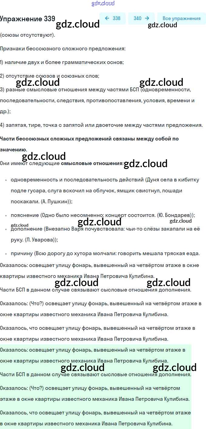 Ответ на задание 339 Учебник Русский язык за 9 (девятый) класс Разумовская, Львова, Капинос, Львов Вертикаль 2018, 2021