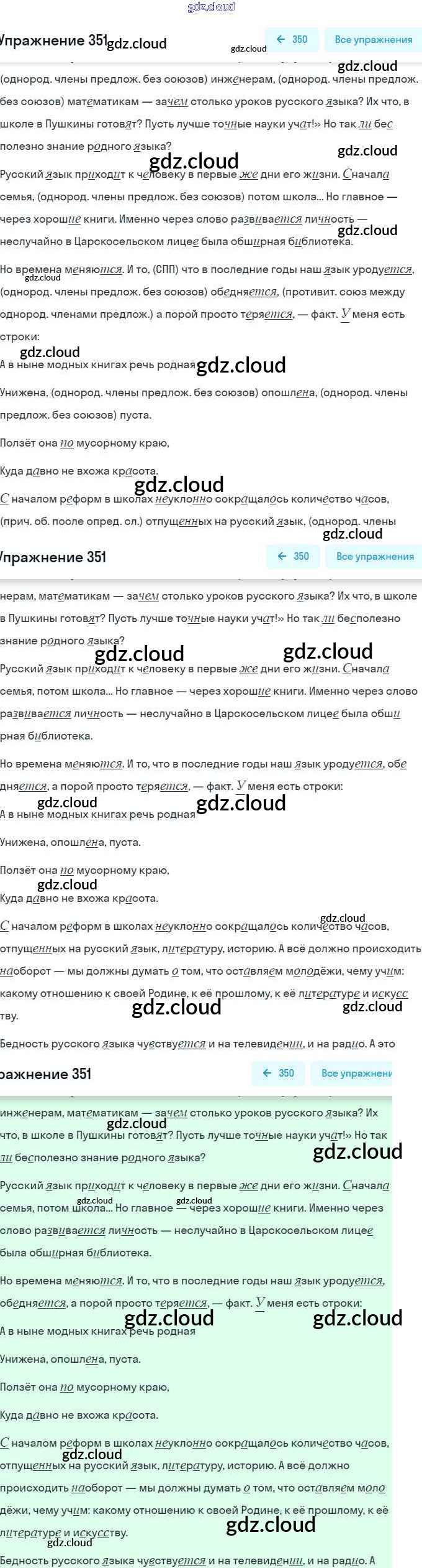 Ответ на задание 351 Учебник Русский язык за 9 (девятый) класс Разумовская, Львова, Капинос, Львов Вертикаль 2018, 2021
