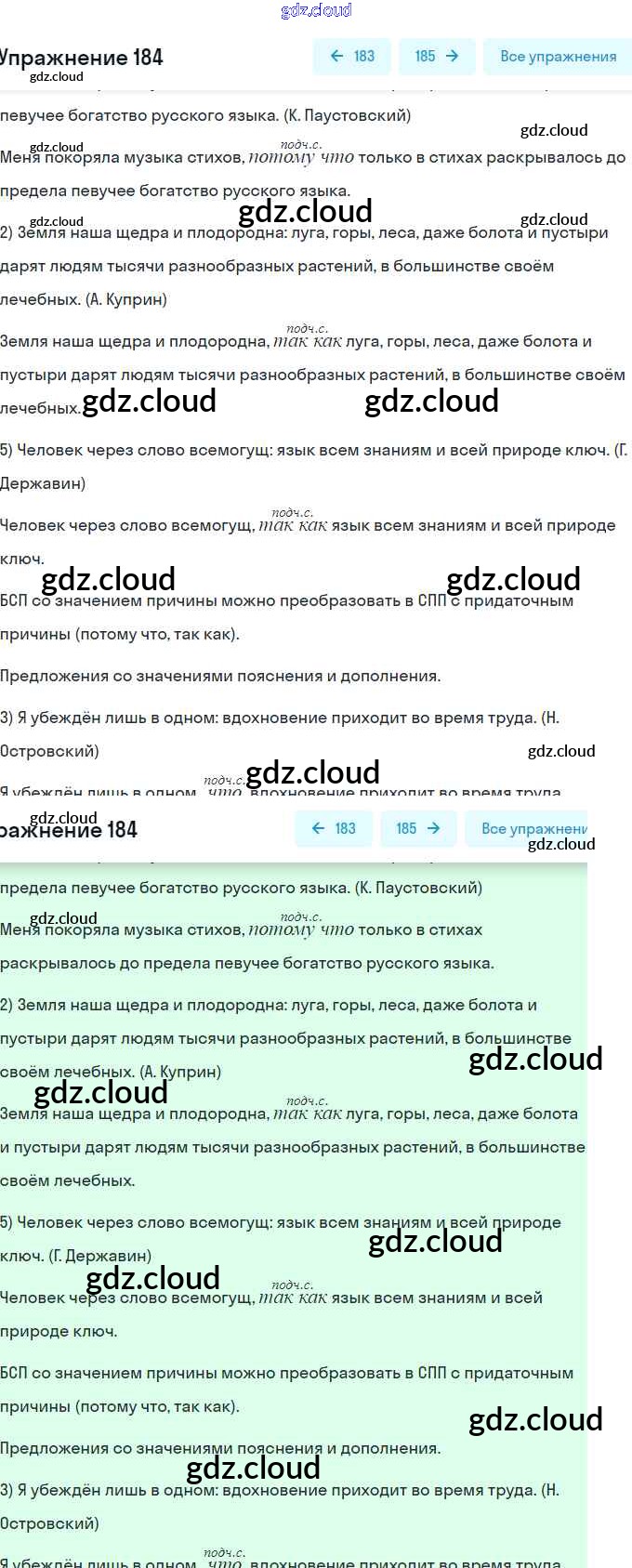 Ответ на задание 184 Учебник Русский язык за 9 (девятый) класс Рыбченкова, Александрова, Загоровская, Нарущевич УМК 2018