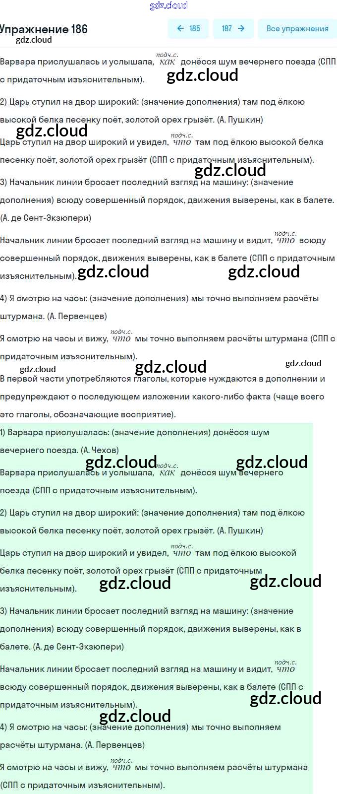 Ответ на задание 186 Учебник Русский язык за 9 (девятый) класс Рыбченкова, Александрова, Загоровская, Нарущевич УМК 2018