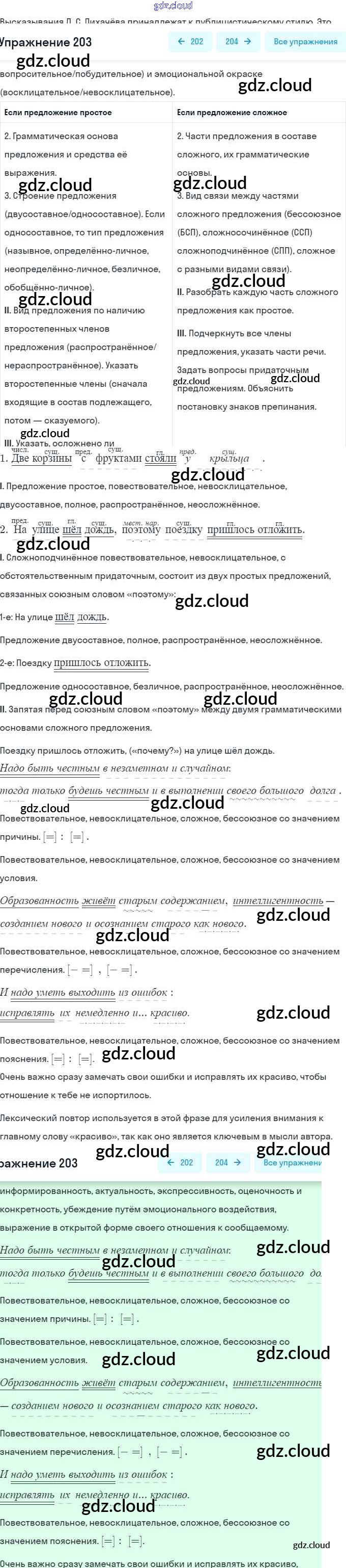 Ответ на задание 203 Учебник Русский язык за 9 (девятый) класс Рыбченкова, Александрова, Загоровская, Нарущевич УМК 2018