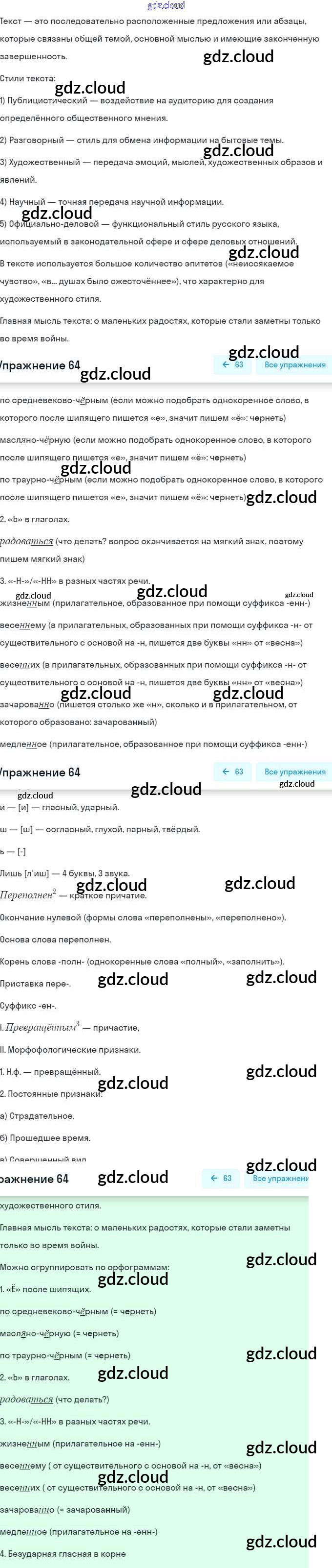 Ответ на задание 64 Учебник Русский язык за 9 (девятый) класс Рыбченкова, Александрова, Загоровская, Нарущевич УМК 2018