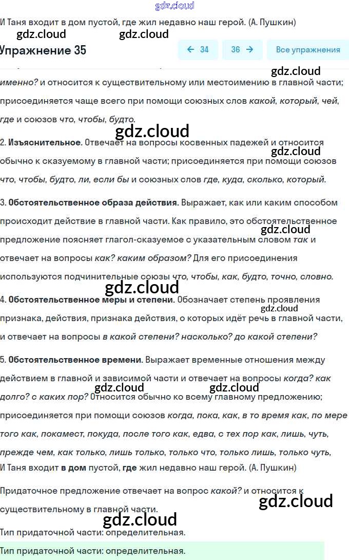 контрольная работа / сложноподчинённое предложение / вариант 1 / 35